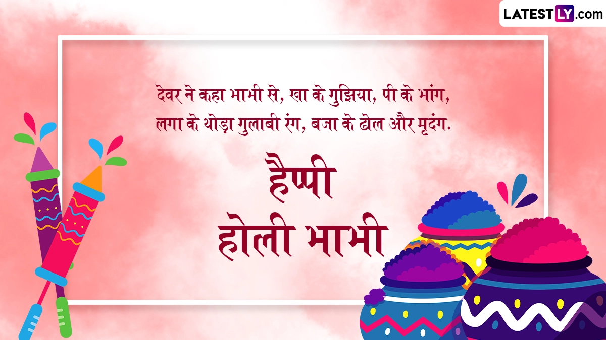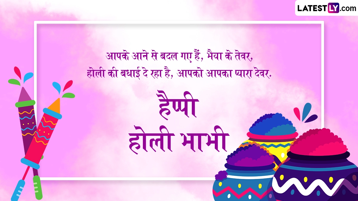 Happy Holi 2024 Bhabhi Ji Wishes in Hindi: होली (Holi) रंगों का एक ऐसा त्योहार है, जब हर कोई अपने दिल से सारे पुराने गिले-शिकवे भुलाकर एक-दूसरे को गले लगाता है और रंग लगाकर होली के पर्व को धूमधाम से मनाता है. होली के दिन मतवालों की टोली जमकर हुडदंग मचाती है और एक-दूसरे को रंगों में सराबोर करके इस पर्व को मनाती है. लोग अपने परिवार, दोस्तों, करीबियों के साथ मिलकर इस जश्न को मनाते हैं. रंग-गुलाल लगाने के साथ ही भांग की ठंडाई और गुझिया की मिठास का आनंद लिया जाता है. होली के गानों पर जमकर डांस किया जाता है, लेकिन घर-परिवार के बीच खेली जाने वाली होली में देवर-भाभी की होली (Devar-Bhabhi Holi) को बेहद खास माना जाता है. देवर-भाभी का रिश्ता बेहद खास होता है, जिसमें मस्ती-मजाक और प्यार भरी नोकझोंक अक्सर होती रहती है, इसलिए जब तक देवर-भाभी एक-दूसरे को रंग न लगा लें, सही मायनों में होली तब तक पूरी नहीं होती है.