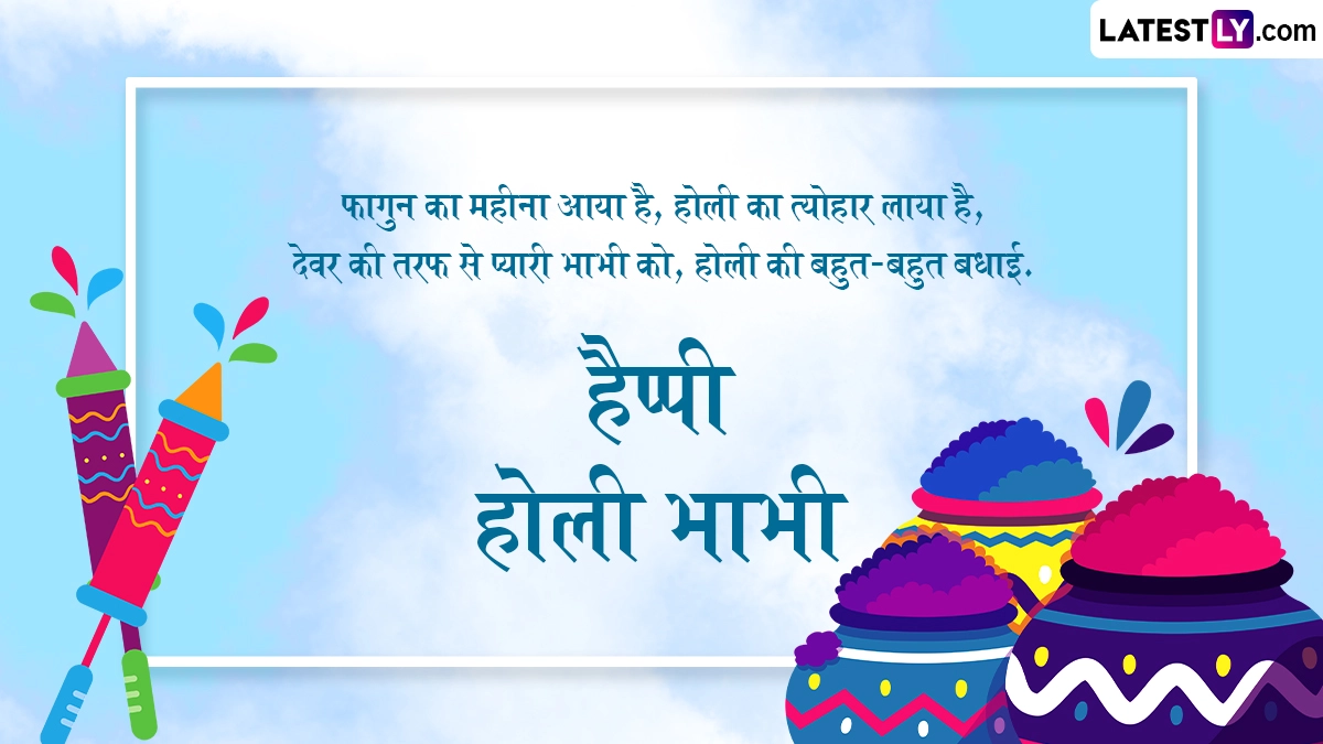 होली का पर्व वैसे तो हर किसी के लिए काफी महत्व रखता है, लेकिन देवर-भाभी की होली की बात ही कुछ निराली है. होली पर भाभी को रंग लगाने के साथ ही आप उन्हें पर्व की प्यार भरी शुभकामनाएं देना न भूलें. इस खास अवसर पर हम आपके लिए लेकर आए हैं भाभी स्पेशल होली के शानदार विशेज, वॉट्सऐप मैसेजेस, शायरी, कोट्स और जीआईएफ ग्रीटिंग्स, जिन्हें आप अपनी प्यारी भाभी के साथ शेयर कर सकते हैं.