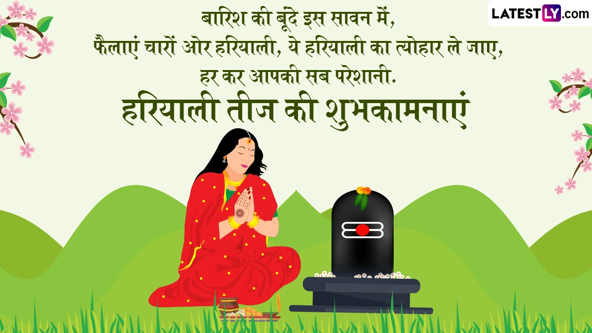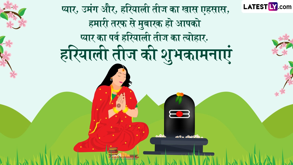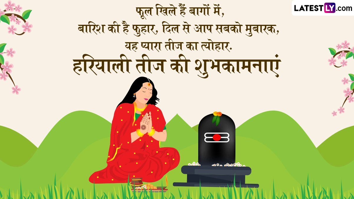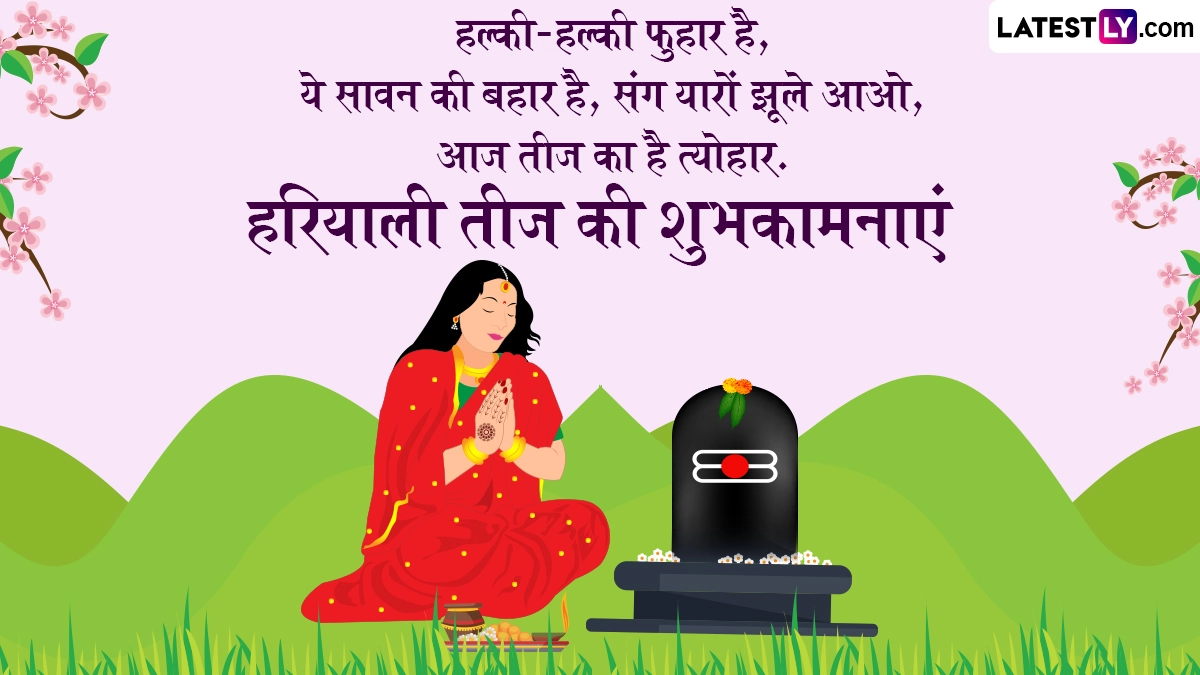 Hariyali Teej 2025 Wishes in Hindi: हर साल सावन मास (Sawan Maas) के शुक्ल पक्ष की तृतीया तिथि को हरियाली तीज (Hariyali Teej) का त्योहार मनाया जाता है. इस दिन सुहागन महिलाएं और अविवाहित कन्याएं दोनों ही व्रत रखकर विधि-विधान से भगवान शिव (Bhagwan Shiv) और माता पार्वती (Mata Parvati) की पूजा करती हैं. हरियाली तीज का विशेष धार्मिक महत्व बताया जाता है, जिसे श्रावणी तीज (Shravani Teej) भी कहा जाता है. इस साल 27 जुलाई 2025 को हरियाली तीज मनाई जा रही है. इस दिन विवाहित महिलाएं अपने पति की दीर्घायु के लिए व्रत करती हैं, जबकि अविवाहित कन्याएं शिव जी जैसा सुयोग्य वर पाने की कामना से व्रत रखकर शिव-पार्वती की पूजा करती हैं. ऐसी मान्यता है कि इस दिन व्रत रखकर सच्चे दिल से पूजा करने पर विवाहित महिलाओं को अखंड सौभाग्य और खुशहाल वैवाहिक जीवन का आशीर्वाद मिलता है, जबकि कुंवारी कन्याओं को मनचाहे वर की प्राप्ति होती है.