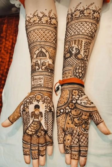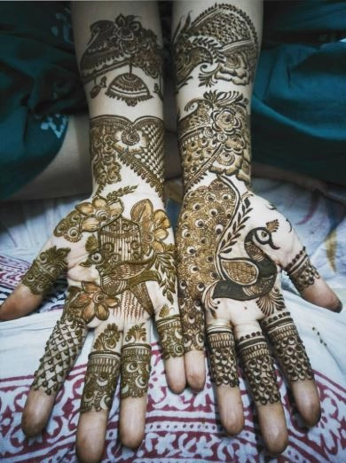 हाथी, दुल्हन और मोर के डिजाइन वाली मेहंदी