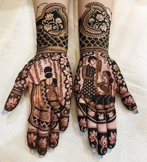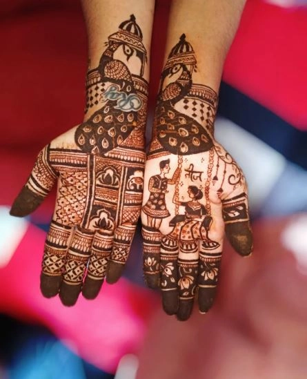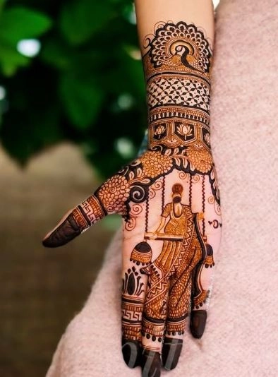 झूले और मोर वाली खूबसूरत मेहंदी डिजाइन