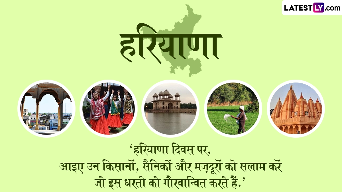 करीब ढाई करोड़ की आबादी वाला यह राज्य हरियाणा दिवस को जीवंत और जोशपूर्ण समारोहों के साथ मनाता है. सड़कें उत्साह से भर जाती हैं और साइकिल रेस और पैदल दौड़ जैसे आयोजन होते हैं. इसी दिन पर्यटन केंद्रों में एक खाद्य महोत्सव का आयोजन किया जाता है, साथ ही रक्तदान अभियान, लाइव संगीत कार्यक्रम समेत कई भव्य आयोजन किए जाते हैं. ऐसे में इस खास अवसर पर आप इन हिंदी विशेज, वॉट्सऐप मैसेजेस, कोट्स, फेसबुक ग्रीटिंग्स के जरिए हरियाणा दिवस की शुभकामनाएं दे सकते हैं.
