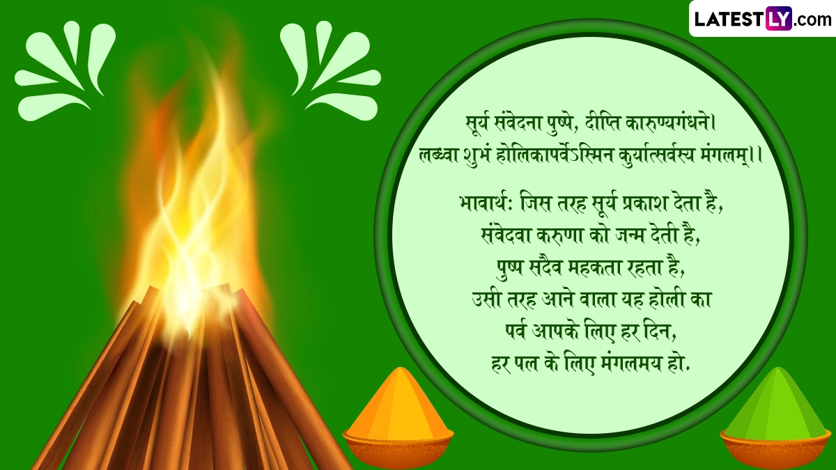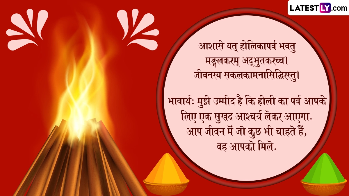 रंगों के त्योहार होली पर लोग न सिर्फ प्यार से एक-दूसरे को रंग-गुलाल लगाते हैं, बल्कि शुभकामना संदेशों का आदान-प्रदान भी करते हैं. इस दिन हिंदी, अंग्रेजी और मराठी के अलावा लोग विभिन्न भाषाओं में शुभकामनाएं देते हैं. ऐसे में हम आपके लिए लेकर आए हैं होली के शानदार विशेज, कोट्स, वॉट्सऐप मैसेजेस, जीआईएफ ग्रीटिंग्स, जिन्हें भेजकर आप संस्कृत में होलिका पर्व शुभकामना: कहते हुए बधाई दे सकते हैं.