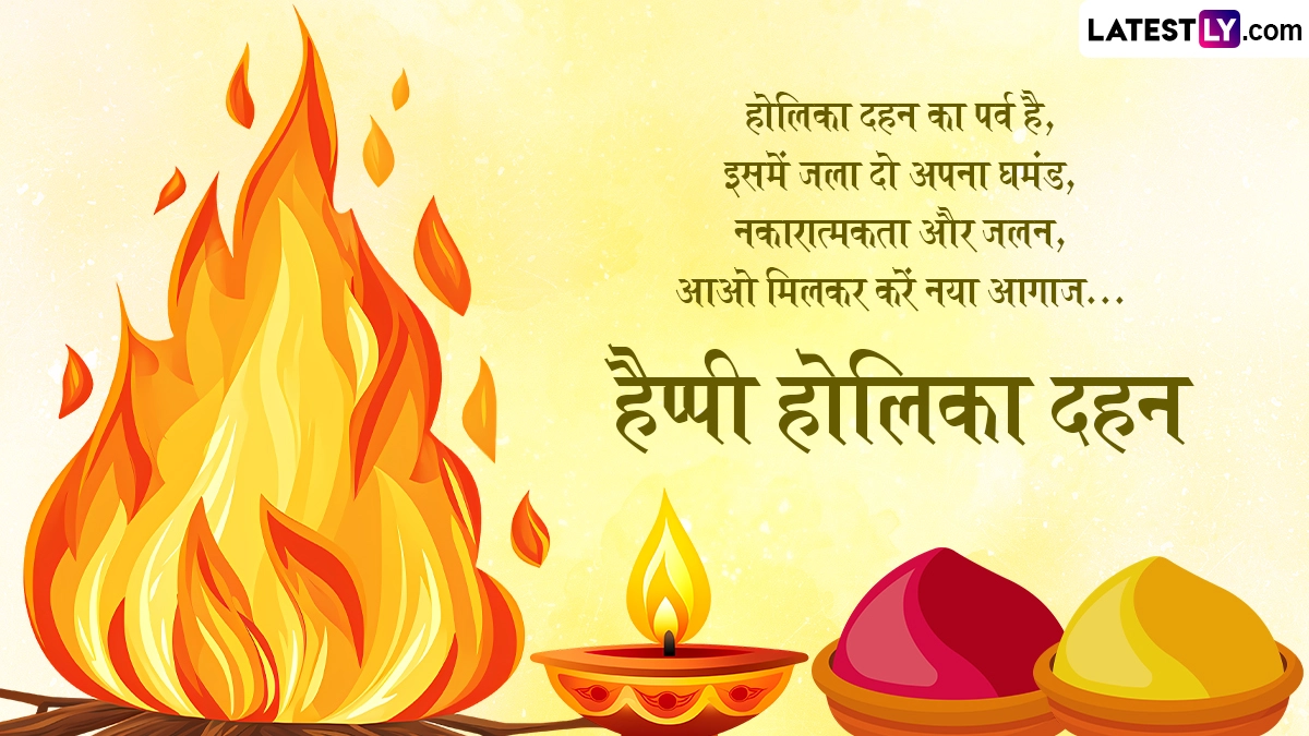 होलिका दहन बुराई पर अच्छाई की जीत का पावन पर्व है. इस दिन लकड़ियों, कंडों या उपलों से होलिका तैयार की जाती है, फिर शुभ मुहूर्त में होलिका की अग्नि को जलाया जाता है. होलिका दहन के दिन लोग एक-दूसरे को शुभकामनाएं भी देते हैं. ऐसे में इस अवसर पर आप इन हिंदी मैसेजेस, वॉट्सऐप विशेज, शायरी, जीआईएफ ग्रीटिंग्स और फोटो एसएमएस को दोस्तों-रिश्तेदारों संग शेयर कर उन्हें हैप्पी होलिका दहन कह सकते हैं.