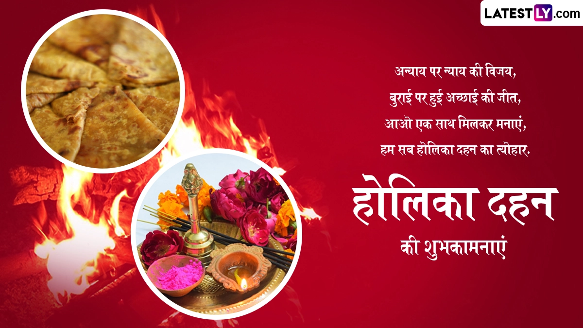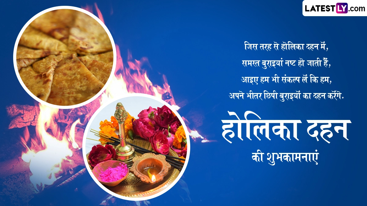 होली से एक दिन पहले मनाए जाने वाले होलिका दहन के पर्व को देश के विभिन्न हिस्सों में रहने वाले लोग अपनी-अपनी स्थानीय परंपराओं और रीति-रिवाजों के साथ मनाते हैं. इस दिन लोग शुभकामना संदेशों का आदान-प्रदान कर होलिका दहन की बधाई भी देते हैं. ऐसे में आप भी इन शानदार हिंदी विशेज, वॉट्सऐप मैसेजेस, कोट्स, फेसबुक ग्रीटिंग्स को भेजकर अपनों को होलिका दहन की प्यार भरी शुभकामनाएं दे सकते हैं.