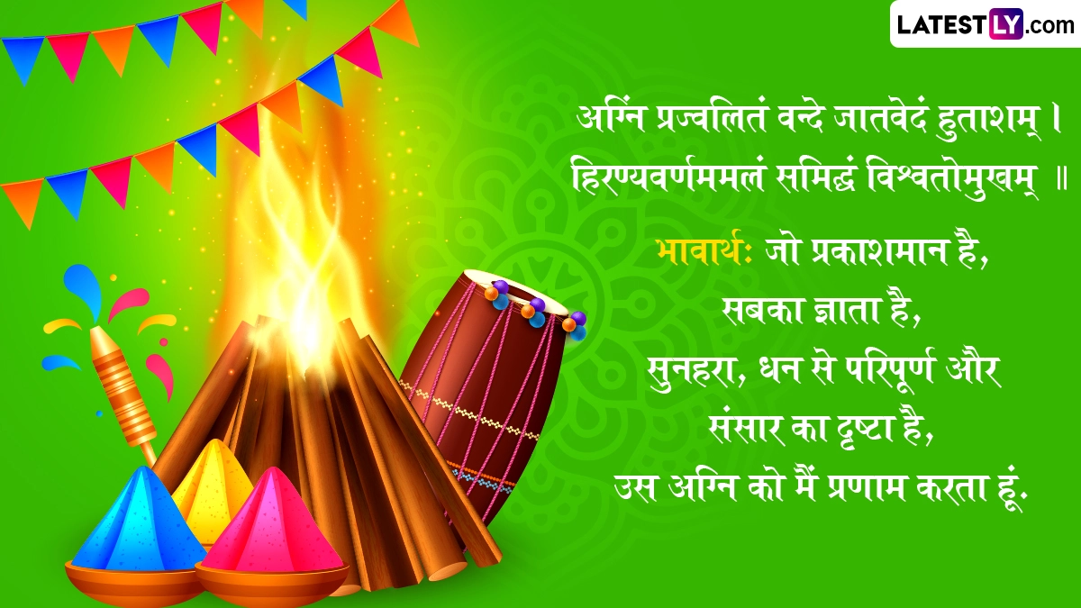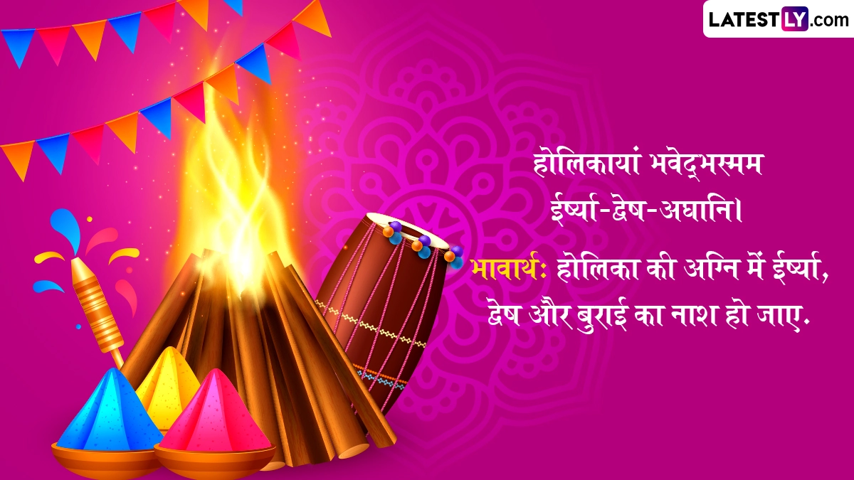 Holika Dahan 2026 Sanskrit Wishes: रंगों के महापर्व होली (Holi) से ठीक एक दिन पहले मनाया जाने वाला होलिका दहन (Holika Dahan) का त्योहार आध्यात्मिक शुद्धि और विजय का संदेश लेकर आता है. हिंदू पंचांग के अनुसार, फाल्गुन मास की पूर्णिमा तिथि को यह पर्व मनाया जाता है. साल 2026 में होलिका दहन 3 मार्च (मंगलवार) को मनाया जा रहा है, जिसके अगले दिन यानी 4 मार्च को धुलेंडी या रंगों वाली होली खेली जाएगी. इस पावन अवसर पर लोग अग्नि की पूजा कर नकारात्मकता को जलाने और जीवन में सकारात्मकता के संचार की प्रार्थना करते हैं.