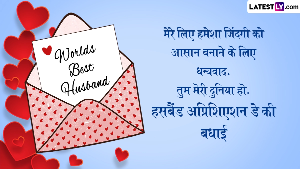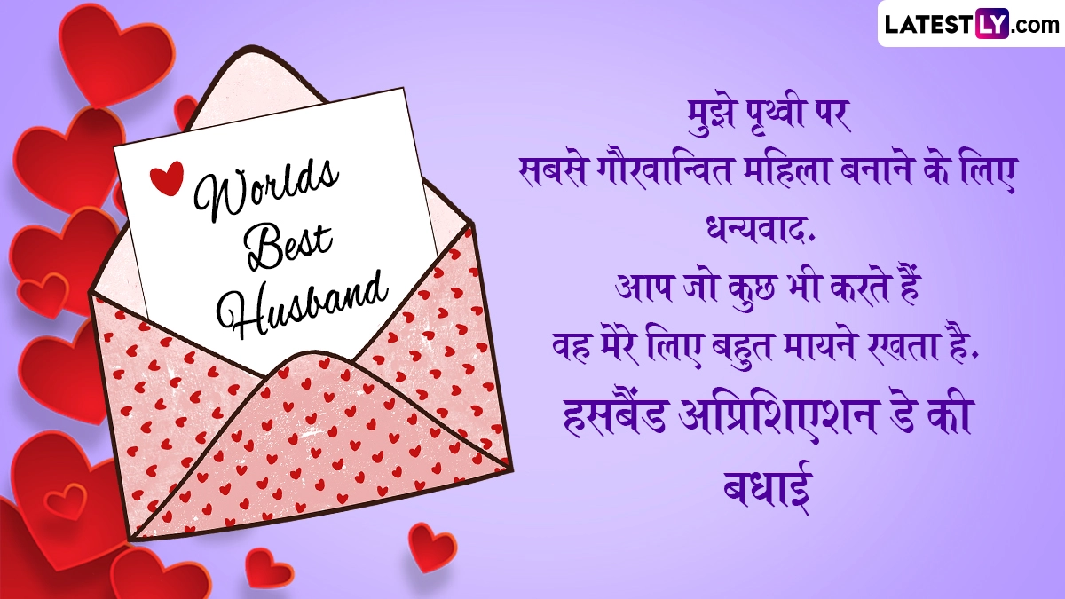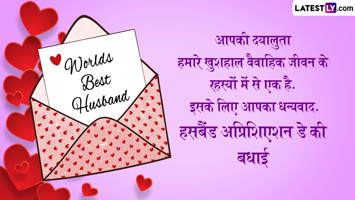 Husband Appreciation Day 2025 Wishes: पति प्रशंसा दिवस (Husband Appreciation Day) एक विशेष अवसर है जो पतियों और पार्टनर्स को उनके परिवारों के प्रति उनके अटूट प्रेम, सपोर्ट और योगदान के लिए सम्मानित करने और उनकी सराहना करने के लिए समर्पित है. यह दिन मजबूत और प्रेमपूर्ण रिश्तों को पोषित करने में पतियों की महत्वपूर्ण भूमिका और उनके घरों पर उनके सकारात्मक प्रभाव को उजागर करता है. पति प्रशंसा दिवस पतियों के लिए जश्न मनाने और उनकी सराहना करने का दिन है. यह उनकी कड़ी मेहनत, समर्पण और हमारे जीवन में उनकी विशेष भूमिका को स्वीकार करने का समय है. यह दिन केवल गिफ्ट देने के बारे में नहीं है, बल्कि पतियों के साथ गुणवत्तापूर्ण समय बिताने और उन्हें स्पेशल फील कराने के बारे में भी है.