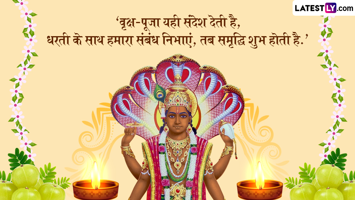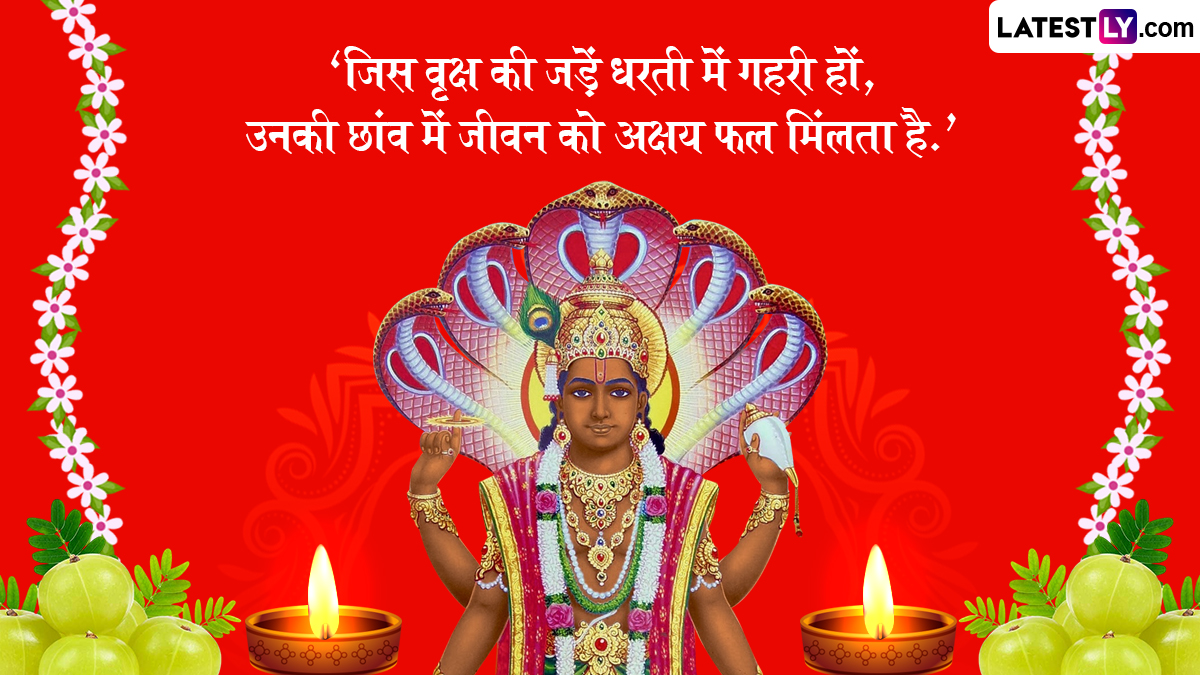 Akshaya Navami 2025 Quotes: कार्तिक शुक्ल पक्ष की नवमी तिथि को आंवला नवमी (Amla Navami) का पर्व मनाया जाता है. इसे अक्षय नवमी (Akshaya Navami) अथवा अनला नवमी (Anala Navami) के नाम से भी जाना जाता है. मान्यता है कि इस दिन आंवले की पूजा, जप, दान, सेवा और भक्ति जैसे पुण्य कार्य करने से जन्म-जन्मांतर तक शुभ फल की प्राप्ति होती है. हिंदू धर्म शास्त्रों में आंवला के वृक्ष में भगवान विष्णु का वास होता है, इसलिए आंवले के वृक्ष का विशेष महत्व होता है. इस वर्ष 31 अक्टूबर 2025 को अक्षय नवमी का पर्व मनाया जाएगा. इस अवसर पर आंवला नवमी के इन शुभ संदेशों एवं शुभकामनाओं को सोशल मीडिया के वॉट्सएप, एक्स, फेसबुक एवं यूट्यूब के माध्यम से अपने प्रियजनों को भेजकर पर्व की खुशियों को शेयर कर सकते हैं. यह भी पढ़ें: Amla Navami 2025 Wishes: आंवला नवमी के इन मनमोहक WhatsApp Status, GIF Greetings, Wallpapers, HD Images के जरिए दें शुभकामनाएं
