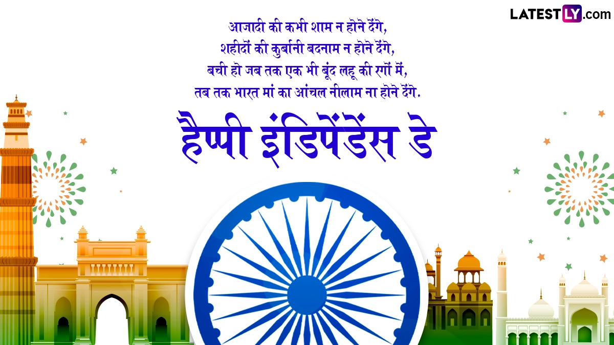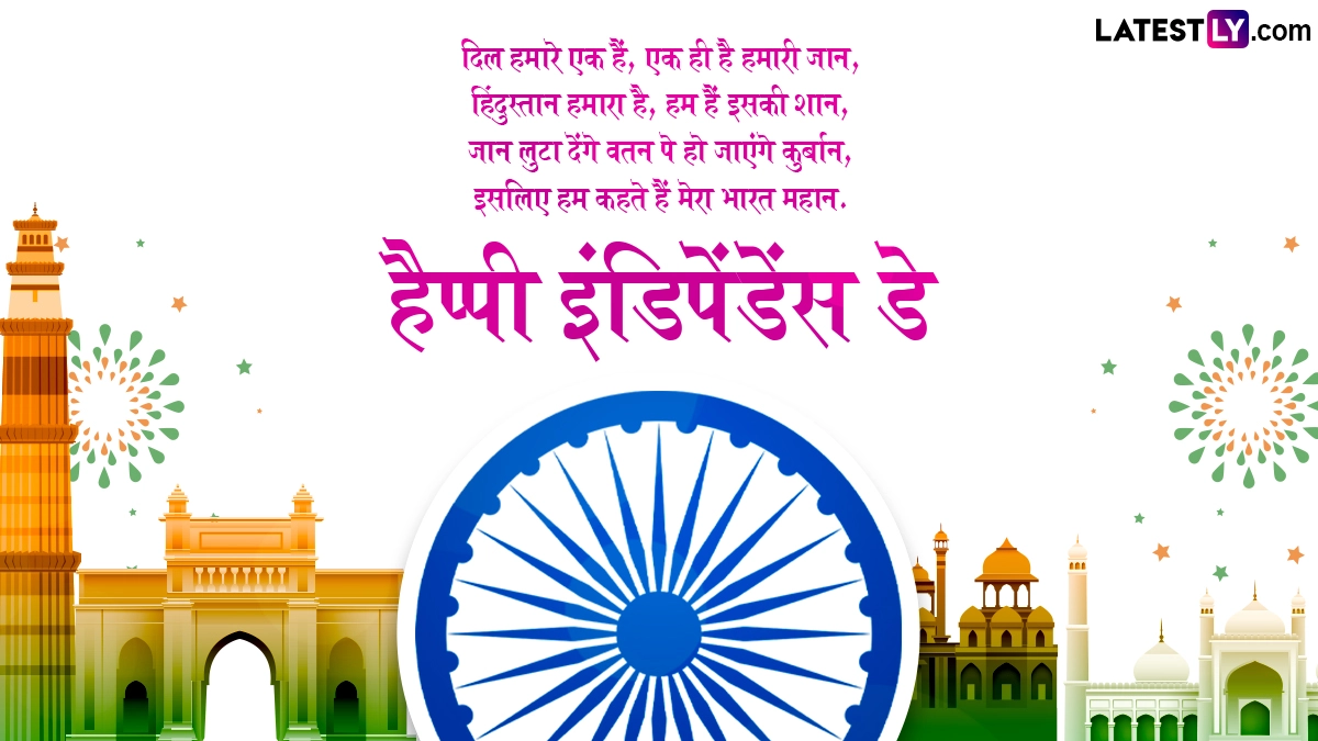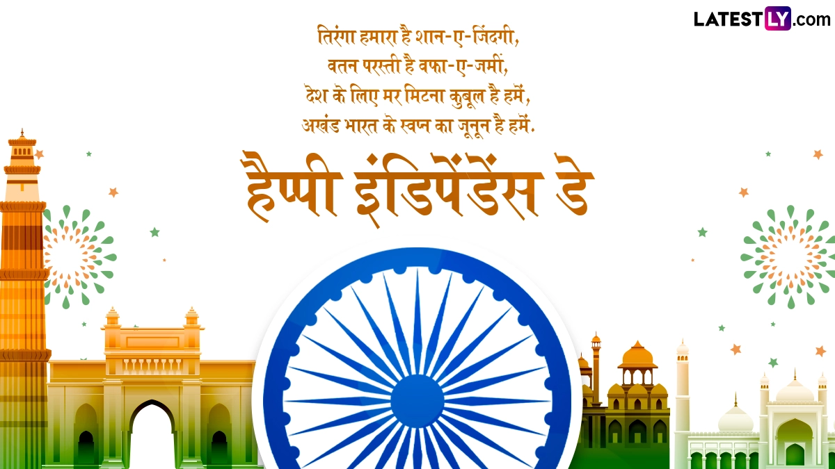स्वतंत्रता दिवस का दिन हर हिंदुस्तानी के लिए काफी मायने रखता है, इसलिए हर कोई इस दिन भारतीय तिरंगे के रंग में सराबोर नजर आता है. लोग जाति-धर्म और मजहब को भुलाकर एक साथ राष्ट्रध्वज तिरंगे को सलाम सलाम करते हैं. इस दिन देशभक्ति के गीत गाए जाते हैं और शुभकामना संदेशों का आदान-प्रदान किया जाता है. ऐसे में इस खास अवसर पर आप इन हिंदी मैसेजेस, शायरी, वॉट्सऐप विशेज, जीआईएफ ग्रीटिंग्स, फोटोज को भेजकर अपनों से हैप्पी इंडिपेंडेंस डे कह सकते हैं.
