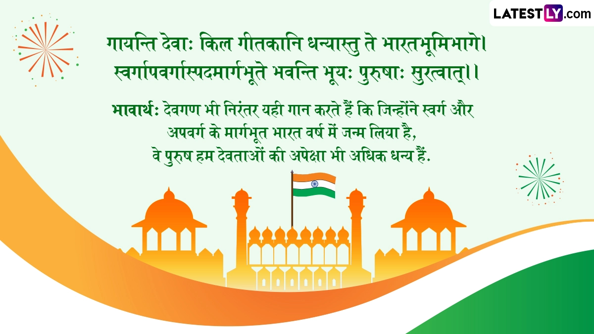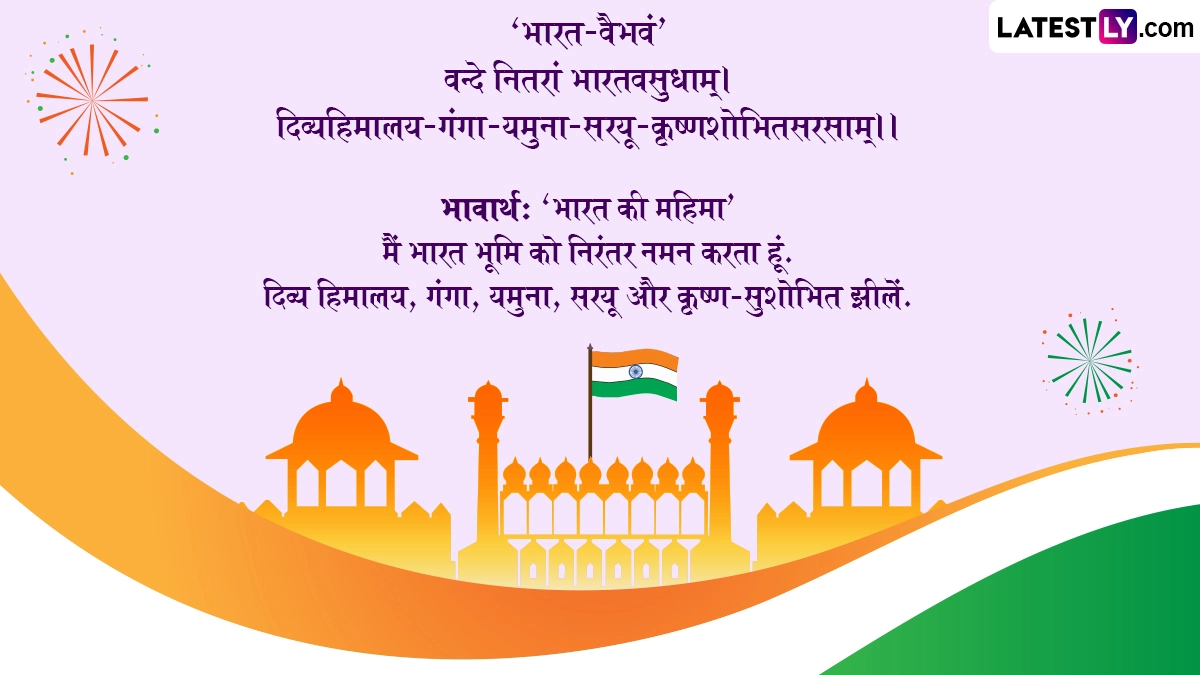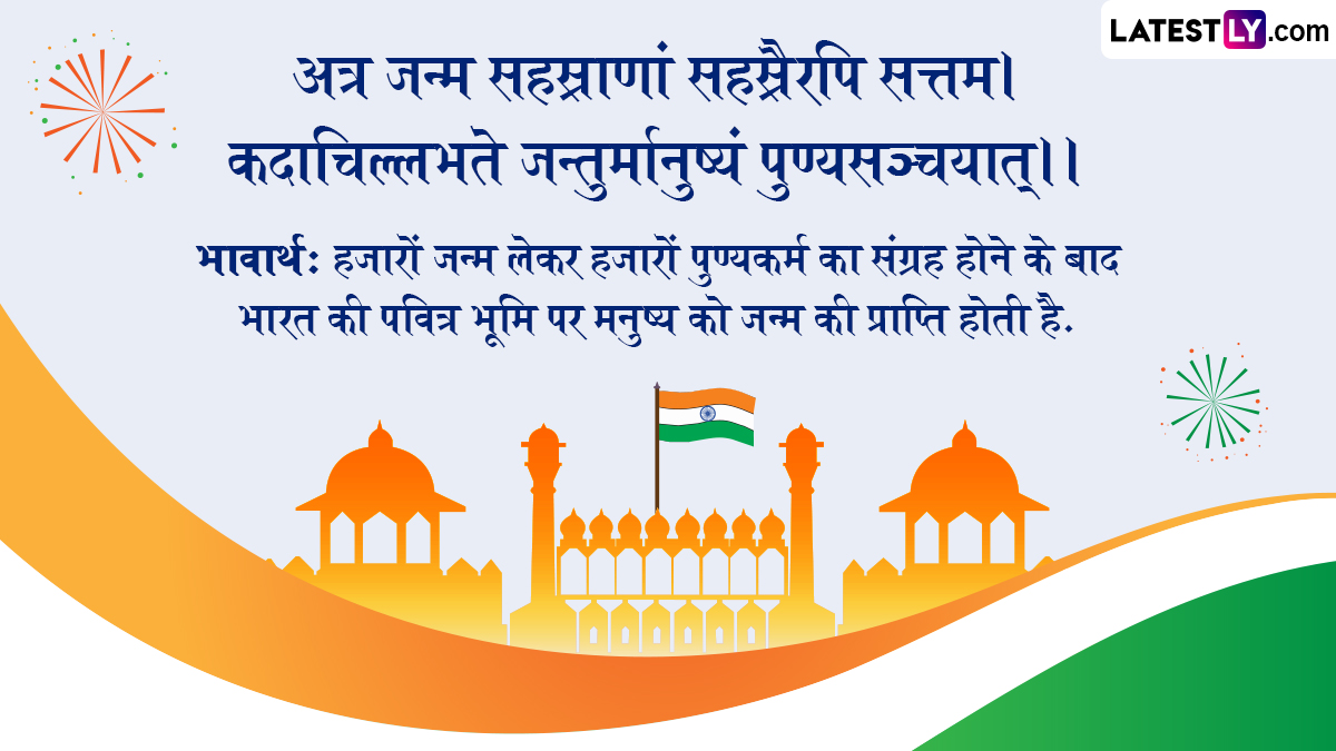 Independence Day 2025 Sanskrit Wishes: स्वतंत्रता दिवस (Independence Day) यानी राष्ट्रभक्ति के इस पर्व को हर साल 15 अगस्त (15th August) के दिन धूमधाम से देशभर में मनाया जाता है. अंग्रेजों की गुलामी की बेड़ियों से भारत को 15 अगस्त 1947 को आजादी मिली थी, इसलिए हर साल इस दिन आजादी का जश्न हर्षोल्लास के साथ मनाया जाता है. राष्ट्रभक्ति के इस पर्व को मनाने के लिए कई दिन पहले से ही तैयारियां शुरु हो जाती हैं. भारत ने अपना पहला स्वतंत्रता दिवस 15 अगस्त 1947 को मनाया था, क्योंकि उसी दिन देश को आजादी मिली थी और उसी दिन आजाद भारत ने पहली बार तिरंगा लहराया था, इसलिए इसकी गिनती 1947 से शुरु होती है. ऐसे में इस साल यानी 2025 में भारत अपना 79वां स्वतंत्रता दिवस (79th Indepence Day) मना रहा है.
