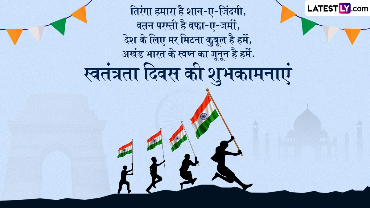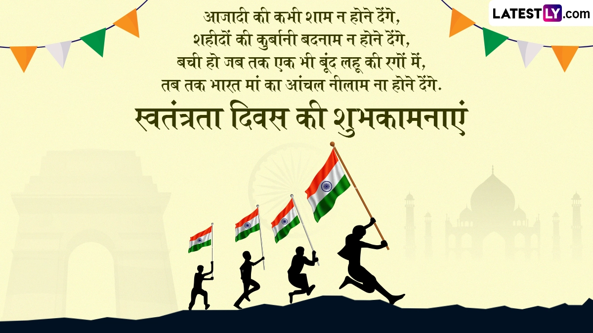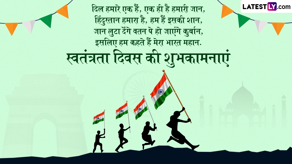 Independence Day 2025 Wishes in Hindi: करीब 200 सालों तक ब्रिटिश सरकार की गुलामी करने के बाद 15 अगस्त (15th August) 1947 को भारत देश गुलामी की बेड़ियों से आजाद हुआ था, लेकिन इसके लिए कई स्वतंत्रता सेनानियों को अपने प्राणों का बलिदान देना पड़ा था. भारत को अंग्रेजी हुकूमत से आजादी दिलाने के लिए कई क्रांतिकारियों और वीर स्वतंत्रता सेनानियों ने एक लंबी लड़ाई लड़ी थी, जिसके बाद आजाद भारत का सपना साकार हो सका. इस आजादी के लिए हमारे देश के कई स्वतंत्रता सेनानियों ने न सिर्फ आंदोलन किए, बल्कि कईयों ने अपने प्राणों को भी हंसते-हंसते मातृभूमि के लिए न्योछावर कर दिया, ताकि तमाम देशवासी आजादी की खुली हवा में सांस ले सकें. यही वजह है कि हर साल 15 अगस्त को देशभर में स्वतंत्रता दिवस (Independence Day) के जश्न को हर्षोल्लास के साथ मनाया जाता है, जगह-जगह तिरंगा फहराकर उसकी आन-बान और शान को सलामी दी जाती है और देशभक्ति के गीतों से पूरा देश गूंज उठता है.