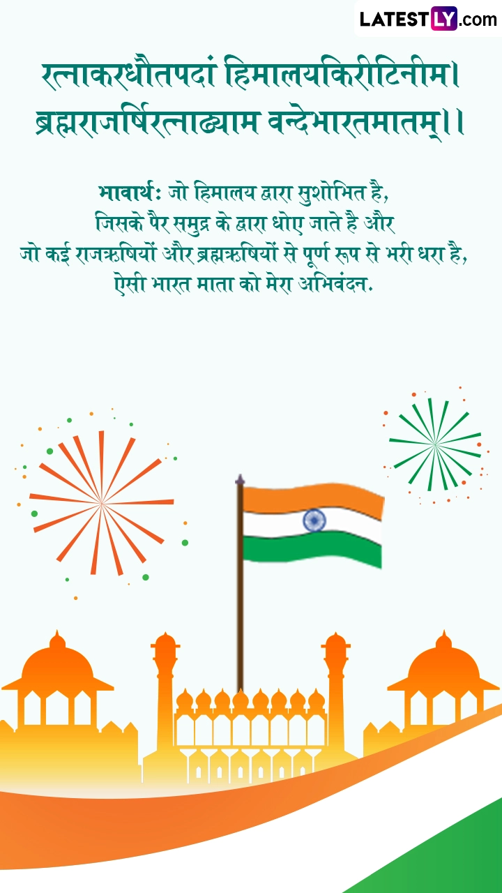 भारत ने अपना पहला स्वतंत्रता दिवस 15 अगस्त 1947 को मनाया था, क्योंकि उसी दिन देश को आजादी मिली थी और उसी दिन आजाद भारत ने पहली बार तिरंगा लहराया था. ऐसे में इस साल यानी 2025 में भारत अपना 79वां स्वतंत्रता दिवस मना रहा है. इस खास अवसर पर आप संस्कृत के इन विशेज, श्लोक, वॉट्सऐप मैसेजेस और फेसबुक ग्रीटिंग्स के जरिए स्वतंत्रता दिवसस्य हार्दिक्यः शुभकामनाः कह सकते हैं.