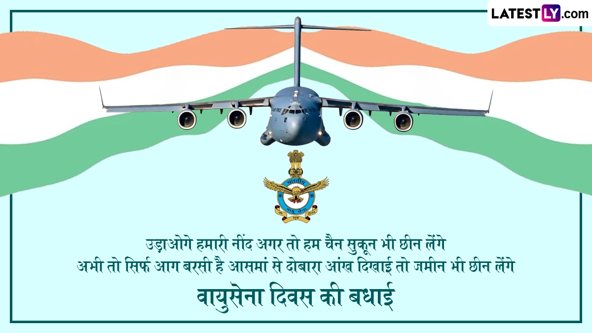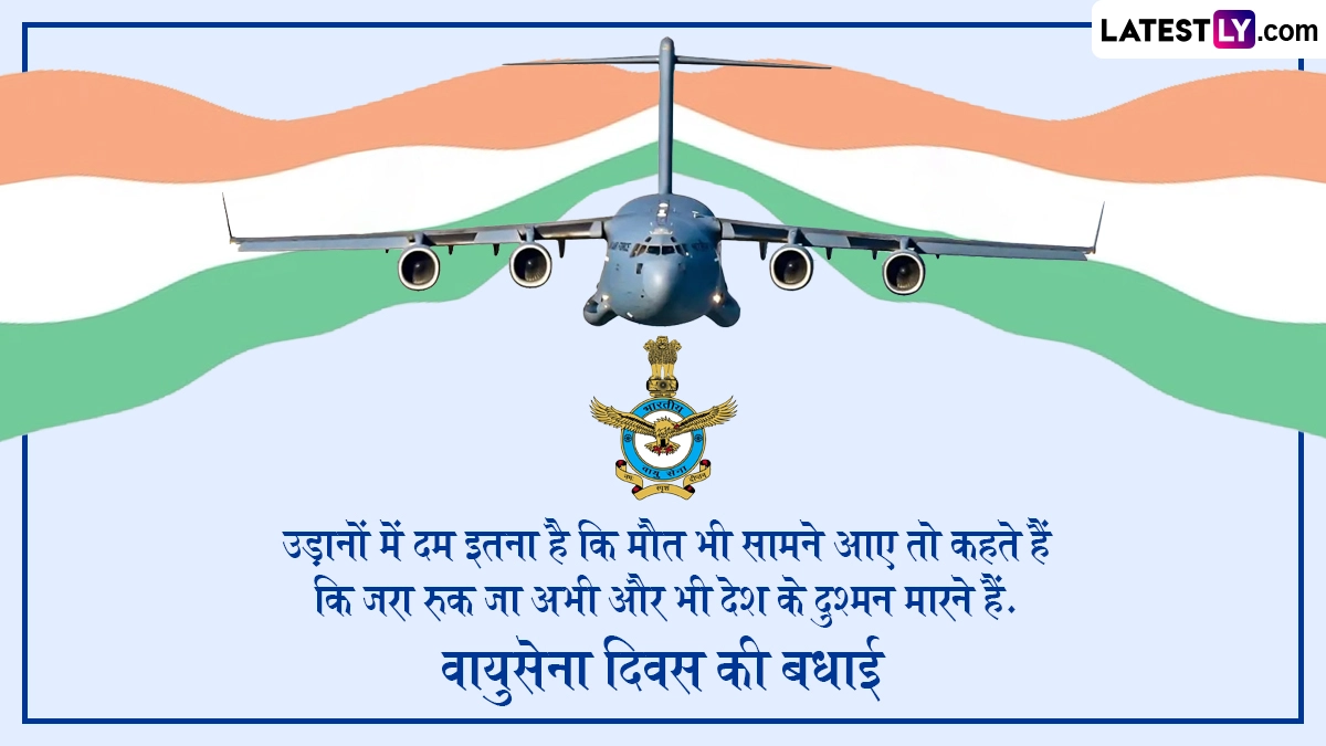 भारतीय वायु सेना न केवल भारतीय क्षेत्र और राष्ट्रीय हितों को सभी खतरों से बचाती है, बल्कि प्राकृतिक आपदाओं के दौरान सहायता भी प्रदान करती है. IAF युद्ध के मैदान में भारतीय सेना को हवाई सहायता प्रदान करता है और साथ ही रणनीतिक और सामरिक एयरलिफ्ट क्षमताएं भी प्रदान करता है. इस दिन सबसे महत्वपूर्ण और पुराने विमान जिन्होंने इतिहास में शानदार प्रदर्शन किया है उसे जिसे खुले आसमान में प्रदर्शित किया जाता है. इस दिन लोग Greetings, HD Wallpapers और Messages भेजकर वायु सेना दिवस की शुभकामनाएं देते हैं. आप भी नीचे दिए गए विशेज भेजकर इंडियन एयरफोर्स डे की बधाई दे सकते हैं.