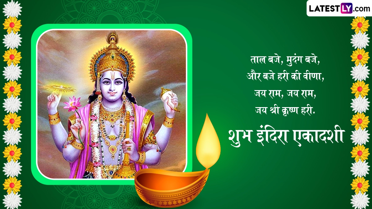इंदिरा एकादशी के दिन सुबह स्नानादि से निवृत्त होने के बाद श्रीहरि की विधिवत पूजा करनी चाहिए. इस दिन पितरों के निमित्त श्राद्ध विधि और ब्राह्मणों को भोजन कराना चाहिए, साथ ही गाय, कौवे और कुत्ते को भी भोजन देना चाहिए. इस दिन शुभकामना संदेशों का आदान-प्रदान भी किया जाता है, इस अवसर पर आप भी इन भक्तिमय हिंदी विशेज, वॉट्सऐप मैसेजेस, कोट्स और फेसबुक ग्रीटिंग्स के जरिए शुभ इंदिरा एकादशी कह सकते हैं. यह भी पढ़ें: Indira Ekadashi 2024: इंदिरा एकादशी की विशिष्ठ पूजा-अनुष्ठान से पितरों की अशांत आत्मा को मिलती है मुक्ति!