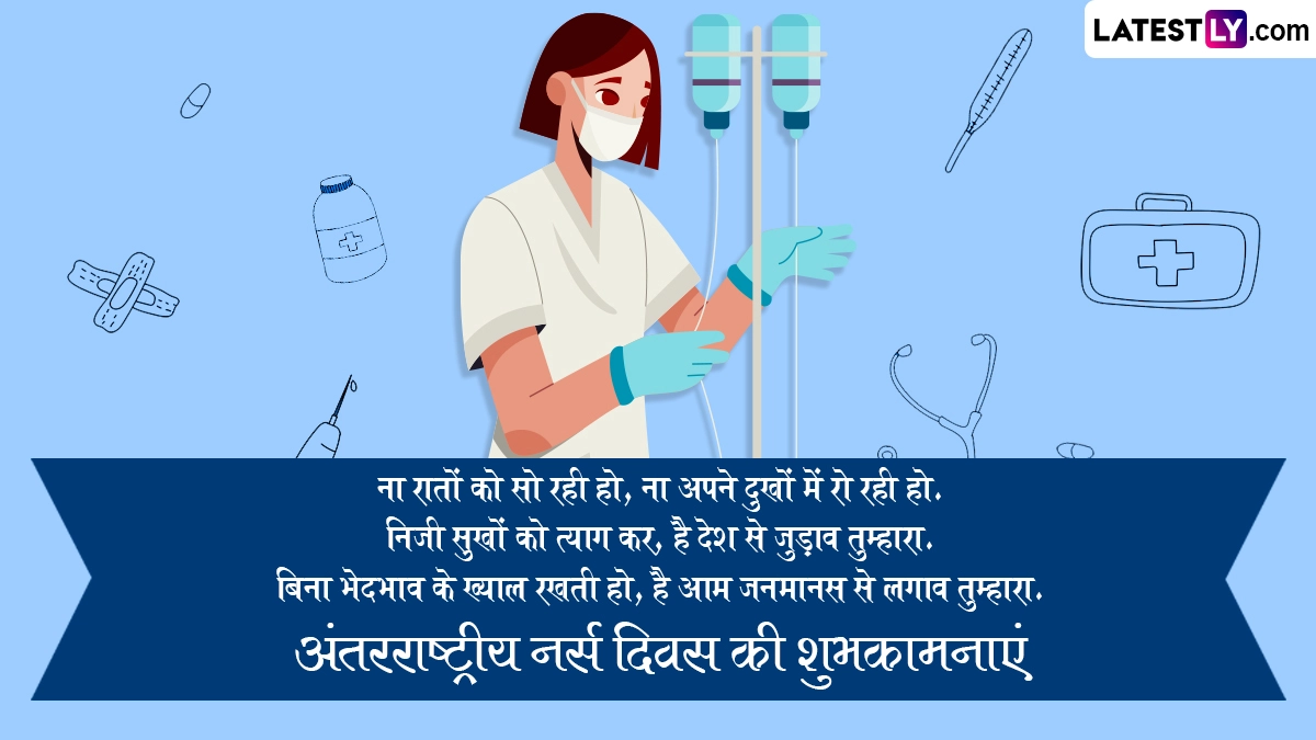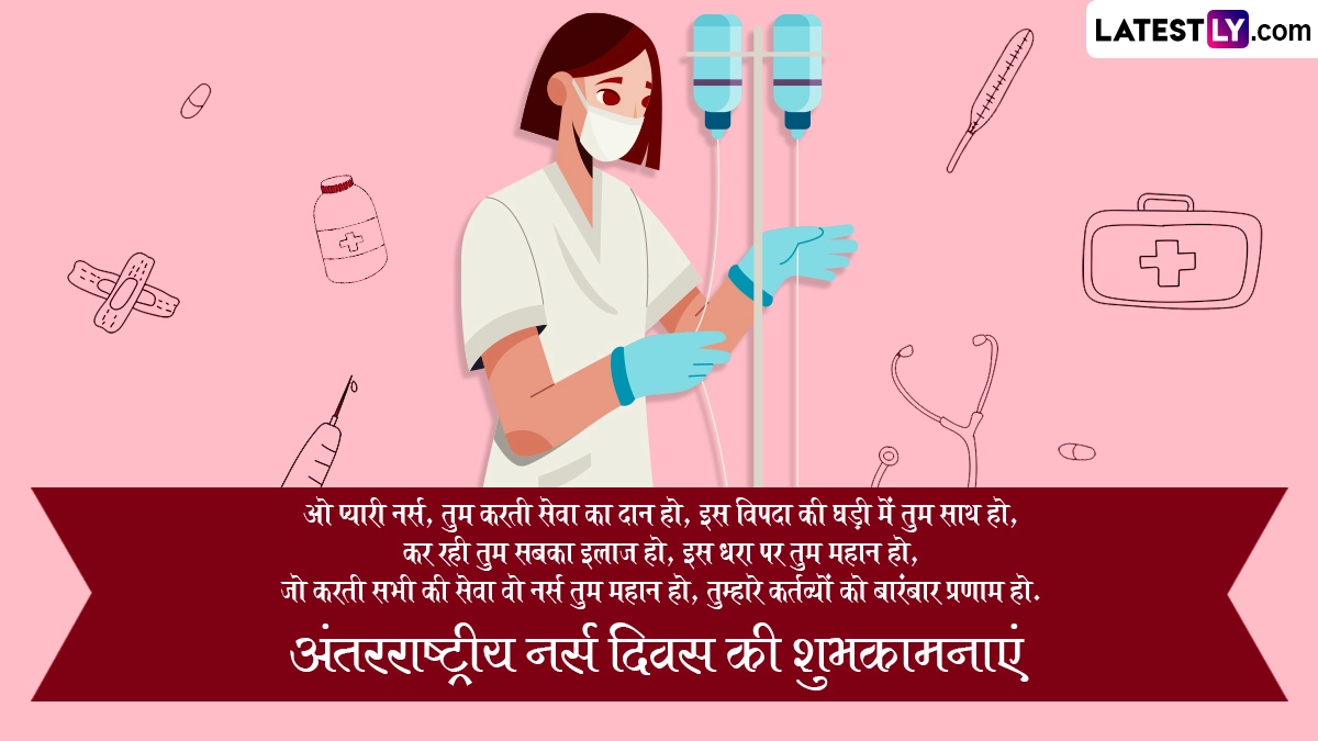 अंतरराष्ट्रीय नर्स दिवस पर नर्सों की सराहना करने और उनको सम्मानित करने के लिए भारत में ‘राष्ट्रीय फ्लोरेंस नाइटिंगेल पुरस्कार’ दिया जाता है, जिसकी शुरुआत भारत सरकार द्वारा साल 1973 में की गई थी. इस खास मौके पर नर्सों के योगदान से हर किसी को रूबरू कराया जाता है और इसकी बधाई दी जाती है. इस अवसर पर आप इन हिंदी मैसेजेस, कोट्स, वॉट्सऐप विशेज, फेसबुक ग्रीटिंग्स के जरिए अंतरराष्ट्रीय नर्स दिवस की शुभकामनाएं दे सकते हैं.