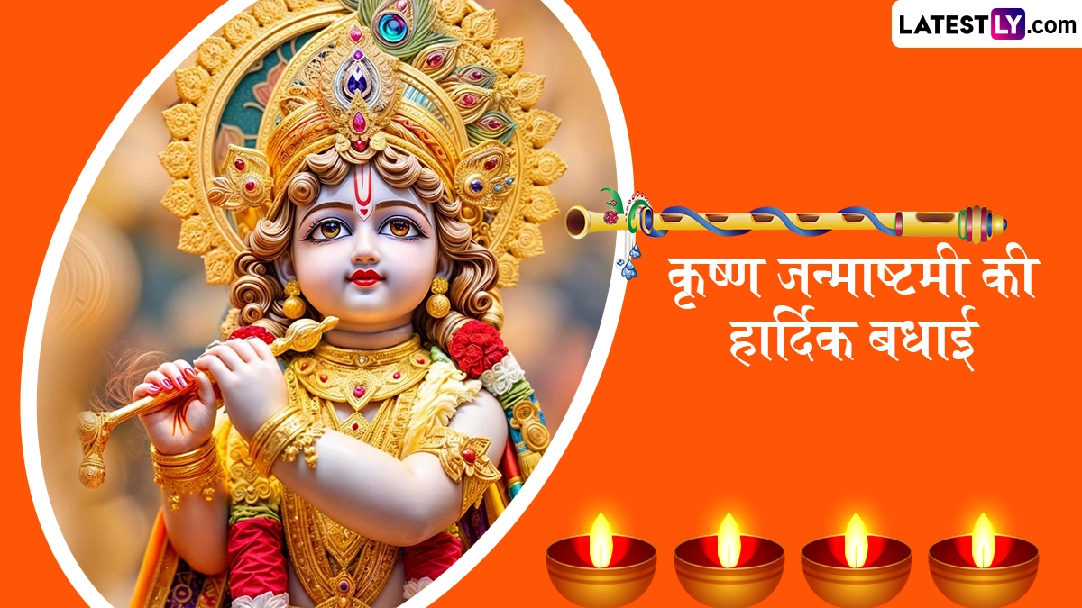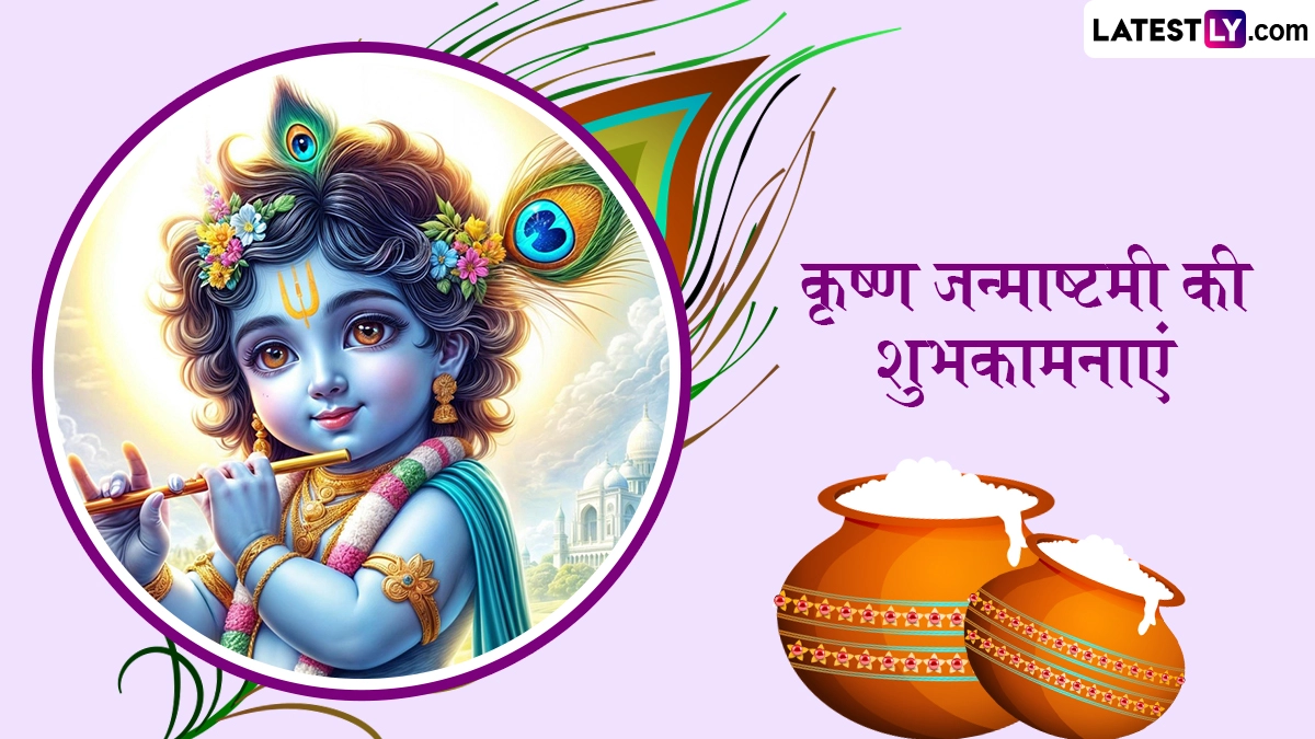 Janmashtami 2025 Greetings: देशभर में स्थित भगवान श्रीकृष्ण (Bhagwan Shri Krishna) के मंदिरों में हर साल भाद्रपद मास के कृष्ण पक्ष की अष्टमी तिथि को कृष्ण जन्माष्टमी (Krishna Janmashtami) का पर्व धूमधाम से मनाया जाता है. प्रचलित पौराणिक मान्यताओं के अनुसार, भाद्रपद मास के कृष्ण पक्ष की अष्टमी तिथि को भगवान विष्णु (Bhagwan Vishnu) ने माता देवकी और वासुदेव की संतान श्रीकृष्ण के रूप में आठवां अवतार लिया था, इसलिए उनके जन्मोत्सव को श्रीकृष्ण जन्माष्टमी के तौर पर धूमधाम से मनाया जाता है. वैसे तो नटखट कान्हा के जन्मोत्सव (Krishna Janmashtami) को देशभर में पूरे श्रद्धाभाव से मनाया जाता है, लेकिन मथुरा और वृंदावन में इस उत्सव की भव्यता और दिव्यता देखते ही बनती है. इस साल उदयातिथि के अनुसार, 16 अगस्त 2025 को जन्माष्टमी मनाई जा रही है. इस दिन देशभर के तमाम श्रीकृष्ण मंदिरों को फूलों से सजाया जाता है, बाल-गोपाल की लीलाओं को प्रस्तुत करने वाली झांकियां सजाई जाती हैं और विशेष पूजा-अनुष्ठानों का आयोजन किया जाता है.