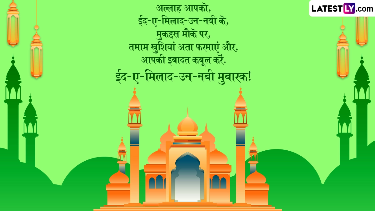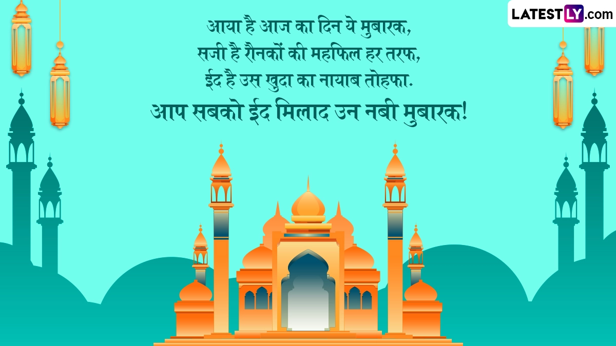 जश्न-ए-ईद-मिलाद-उन-नबी के दिन लोग ज्यादा से ज्यादा समय अल्लाह की इबादत में बिताते हैं, मस्जिदों को सजाया जाता है और लोग कुरआन की तिलावत करते हैं, साथ ही पैगंबर मोहम्मद की दया, करुणा और शिक्षाओं को याद किया जाता है. इस अवसर पर आप इन हिंदी शायरी, वॉट्सऐप मैसेजेस, जीआईएफ ग्रीटिंग्स, कोट्स को भेजकर जश्न-ए-ईद-मिलाद-उन-नबी की मुबारकबाद दे सकते हैं. यह भी पढ़े: Nabidinam पर अपनो को भेजें ये शानदार WhatsApp Stickers, GIF Greetings, Photo Wishes और Facebook Messages