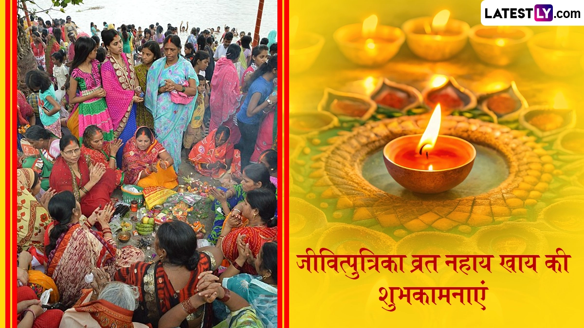 आश्विन मास के कृष्ण पक्ष की सप्तमी तिथि को नहाय-खाय के दिन महिलाएं स्नान-ध्यान करके जीमूतवाहन जी की पूजा करती हैं, इसके बाद भोजन ग्रहण करती हैं. इस दिन मडुआ की रोटी और नोनी की साग खाई जाती है, साथ ही दही-चूड़ा भी खाया जाता है. जितिया नहाय-खाय की आप इन विशेज, वॉट्सऐप स्टिकर्स, एचडी इमेजेस, जीआईएफ ग्रीटिंग्स, वॉलपेपर्स के जरिए शुभकामनाएं दे सकते हैं.