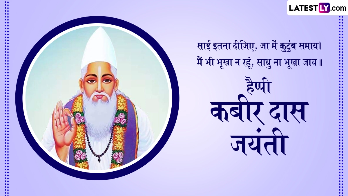 कबीर दास 15वीं सदी के भारतीय रहस्यवादी कवि और संत थे. उन्होंने अपनी कविताओं और दोहों के माध्यम से न सिर्फ भारतीय जनमानस पर अमिट प्रभाव छोड़ा, बल्कि उन्होंने समाज में फैली कुरीतियों, कर्मकांड, अंधविश्वास और सामाजिक बुराइयों की कड़ी आलोचना भी की. कबीर दास जयंती पर आप इन हिंदी मैसेजेस, दोहे, वॉट्सऐप विशेज, जीआईएफ ग्रीटिंग्स के जरिए अपने प्रियजनों को हार्दिक बधाई दे सकते हैं.