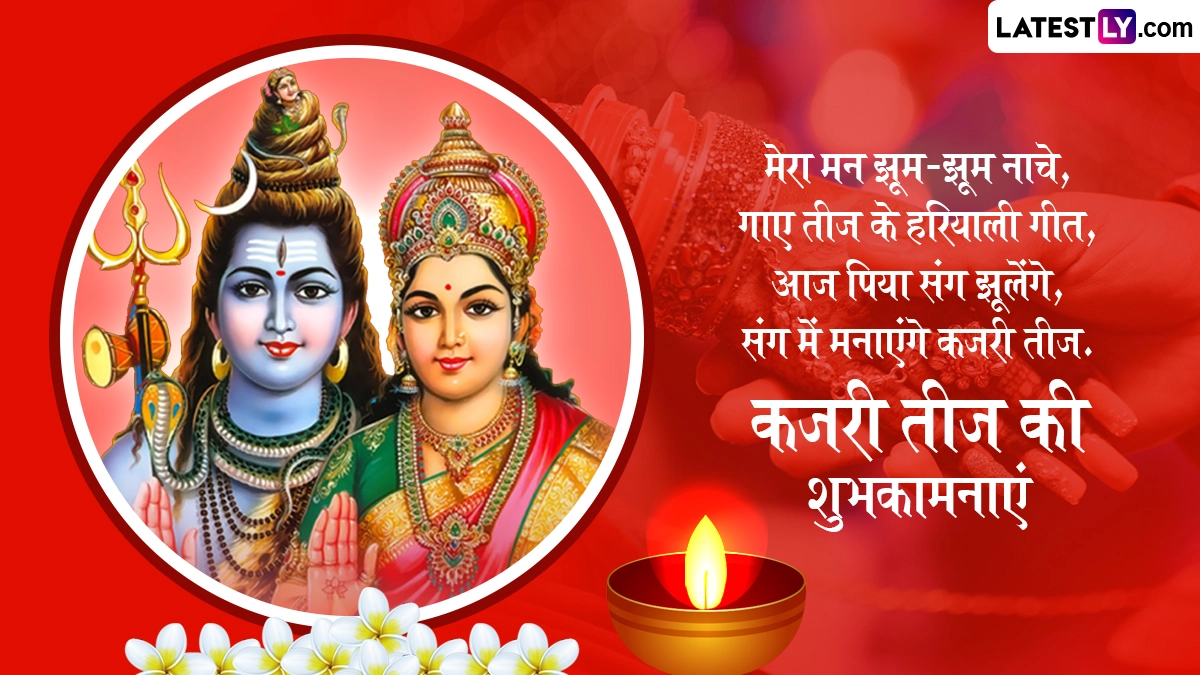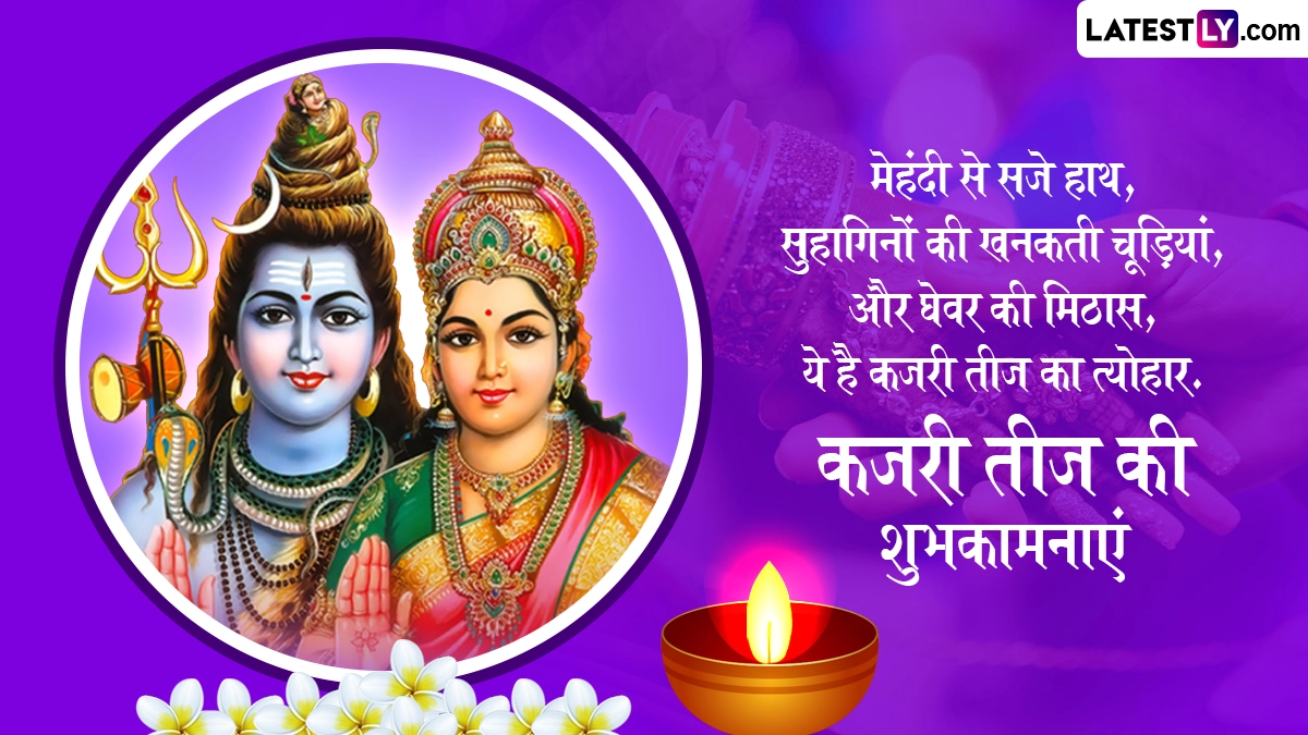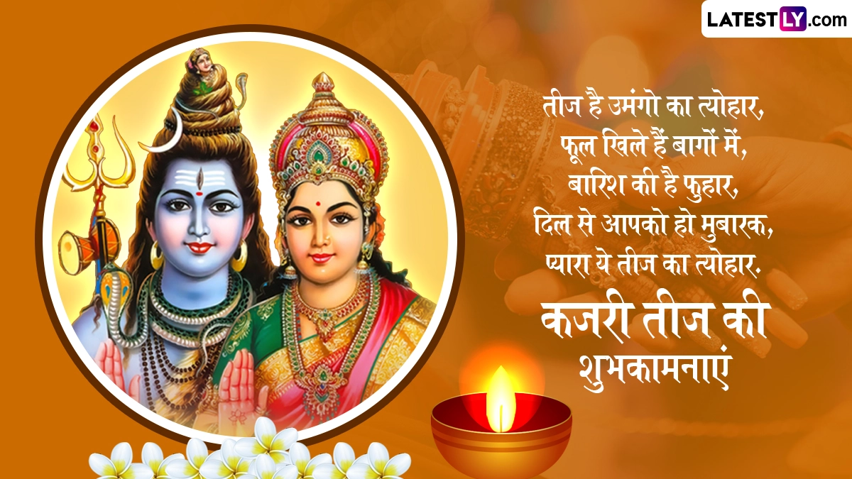 कजरी तीज के दिन महिलाएं अपने पति की लंबी उम्र और अच्छी सेहत की कामना से निर्जल व्रत रखती हैं और सज-संवरकर भगवान शिव-माता पार्वती की पूजा करती हैं. वहीं योग्य वर की कामना से कुंवारी कन्याएं भी इस व्रत को करती हैं. ऐसी मान्यता है कि इस व्रत के प्रभाव से अखंड सौभाग्य और खुशहाल वैवाहिक जीवन का आशीर्वाद मिलता है. ऐसे में इस पावन अवसर पर आप इन प्यार भरे विशेज, कोट्स, फेसबुक मैसेजेस, वॉट्सऐप ग्रीटिंग्स को भेजकर कजरी तीज की शुभकामनाएं दे सकते हैं.