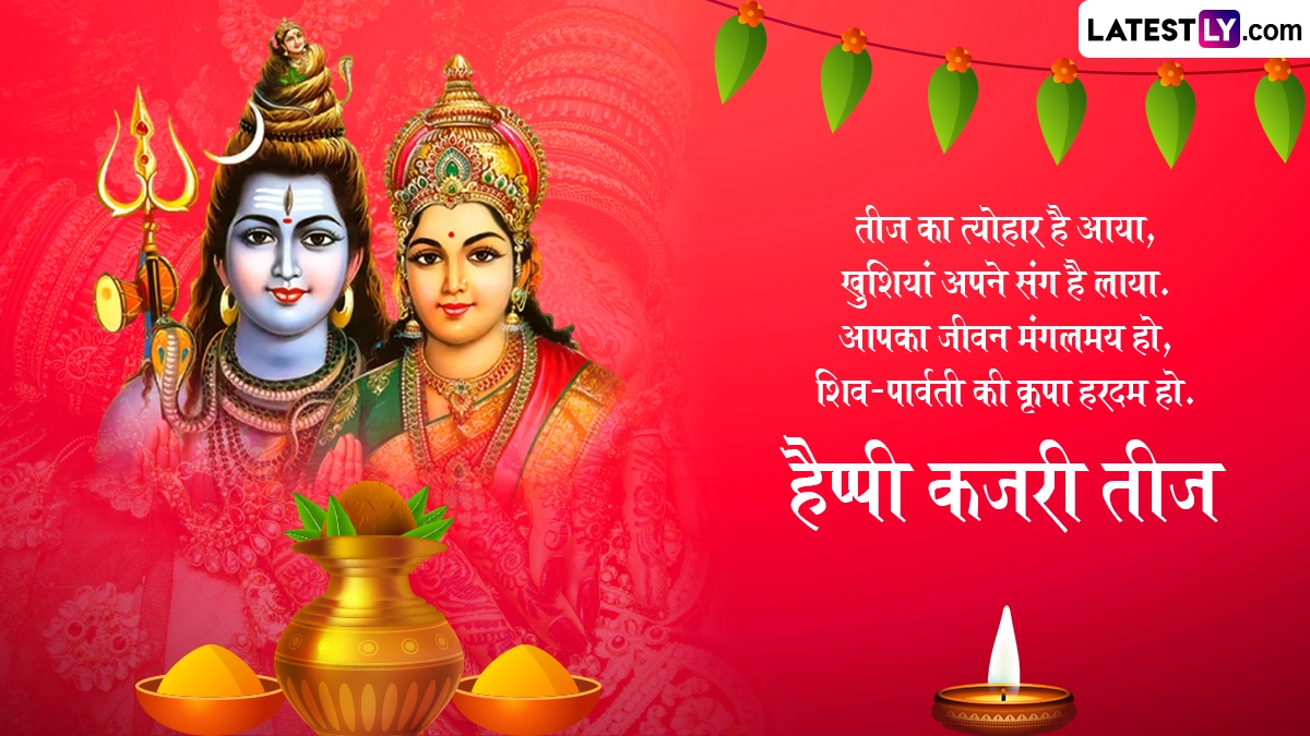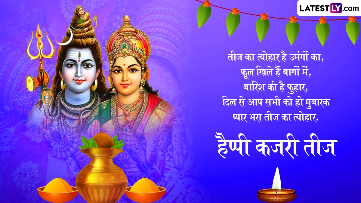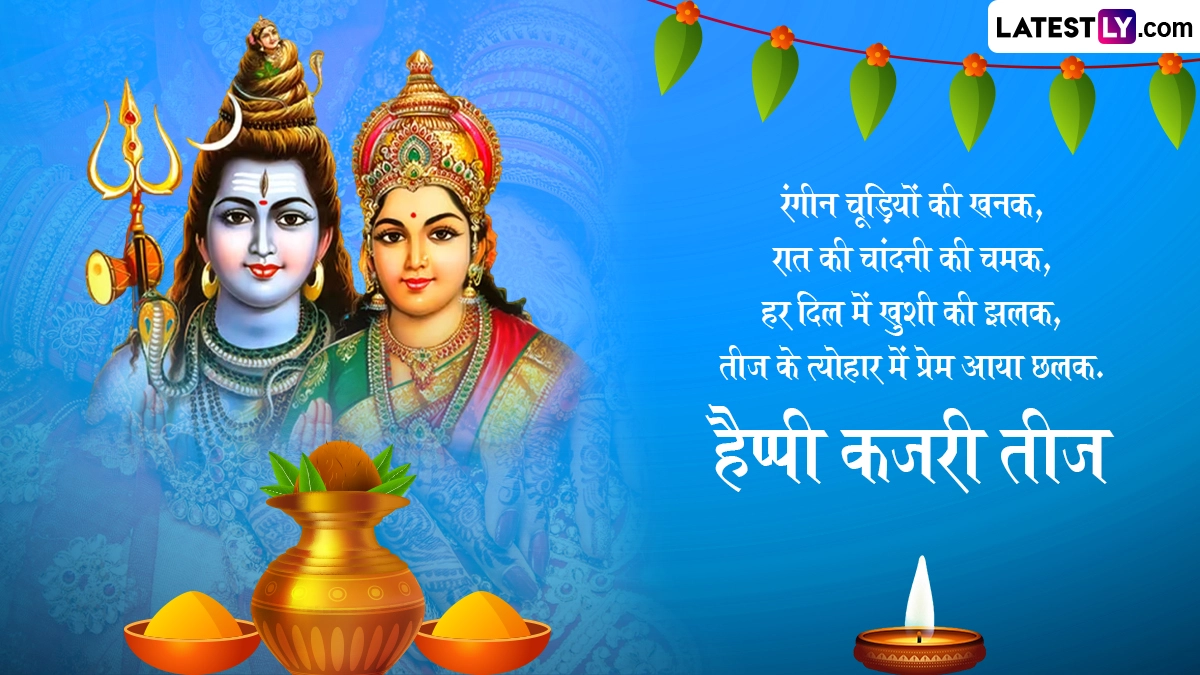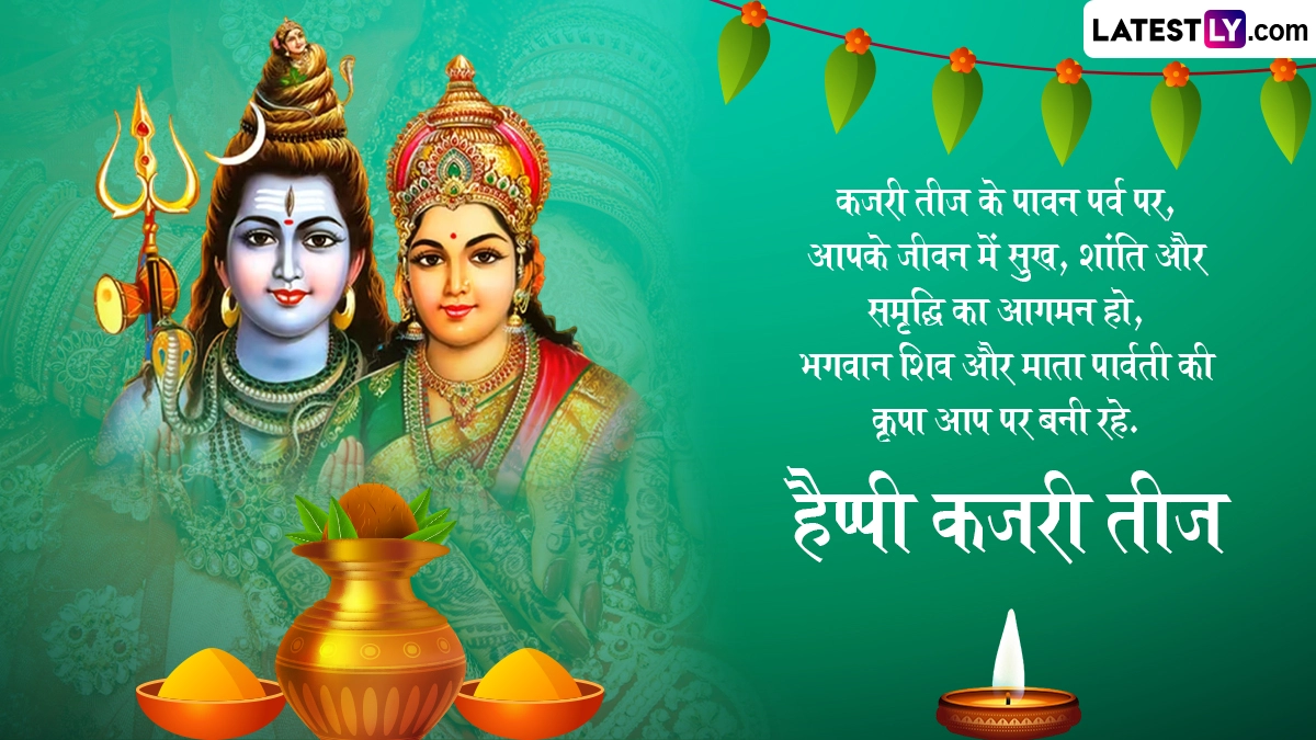 Kajari Teej 2025 Messages in Hindi: हिंदू पंचांग के अनुसार, हर साल भाद्रपद मास के कृष्ण पक्ष की तृतीया तिथि को अखंड सौभाग्य की कामना से महिलाएं कजरी तीज (Kajari Teej) का व्रत करती हैं, जिसे कजली तीज (kajali Teej), बूढ़ी तीज (Budhi Teej) या सातूड़ी तीज (Satudi Teej) जैसे नामों से भी जाना जाता है. हरियाली तीज (Hariryali Teej) मनाने के बाद महिलाएं कजली तीज की तैयारियों में जुट जाती हैं. इस साल 12 अगस्त 2025 को कजरी तीज मनाई जा रही है, जिसका हिंदू धर्म में विशेष महत्व बताया जाता है. कजरी तीज के दिन महिलाएं अपने पति की लंबी उम्र, अच्छी सेहत और खुशहाल वैवाहिक जीवन की कामना से निर्जल व्रत करती हैं, जबकि अविवाहित कन्याएं अच्छे वर की कामना से इस दिन व्रत रखती हैं. इस दिन व्रत रखने वाली महिलाएं सोलह श्रृंगार करके विधि-विधान से भगवान शिव और माता पार्वती की पूजा करती हैं.