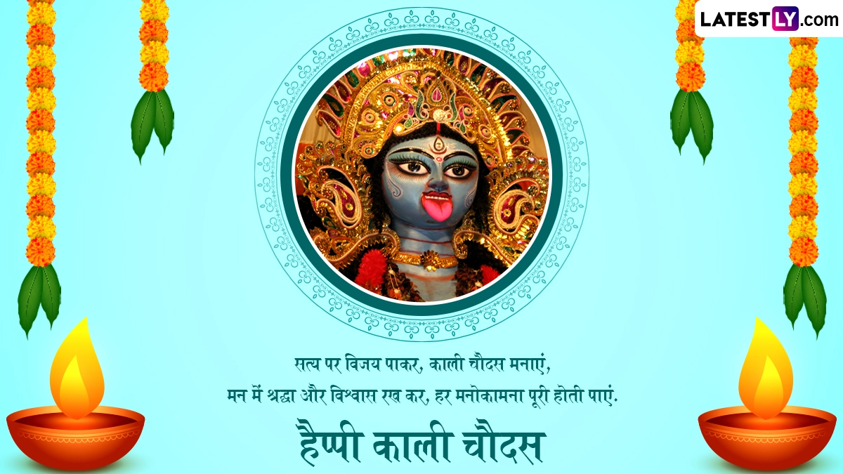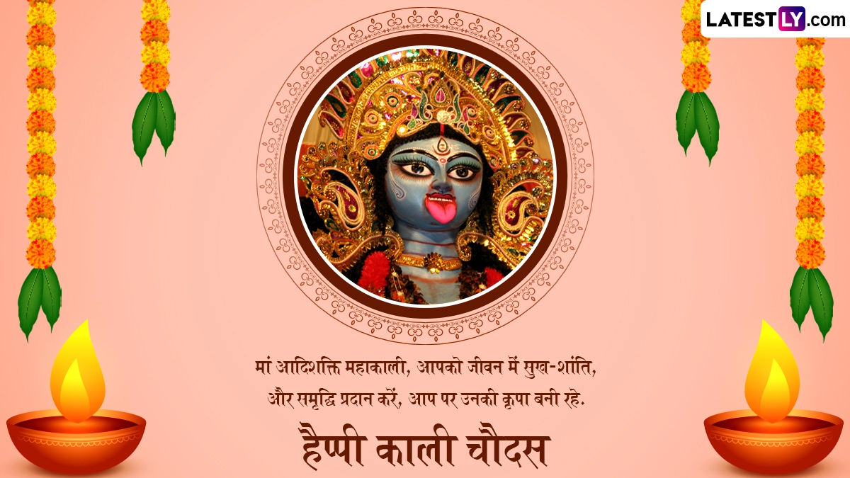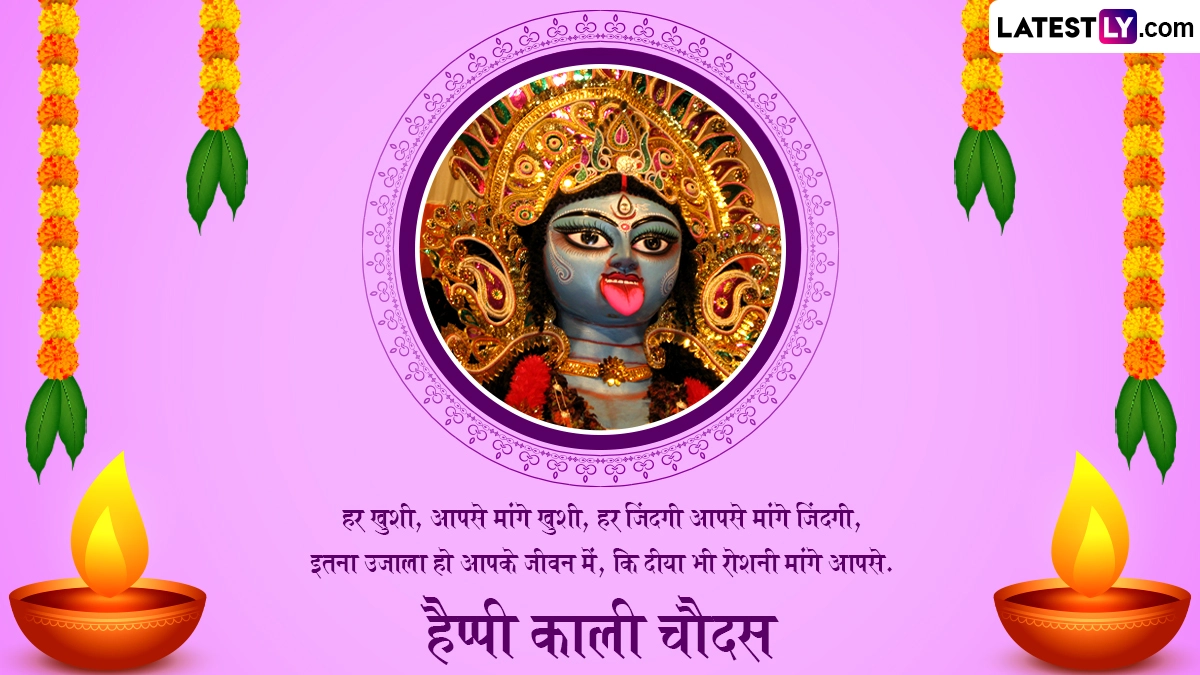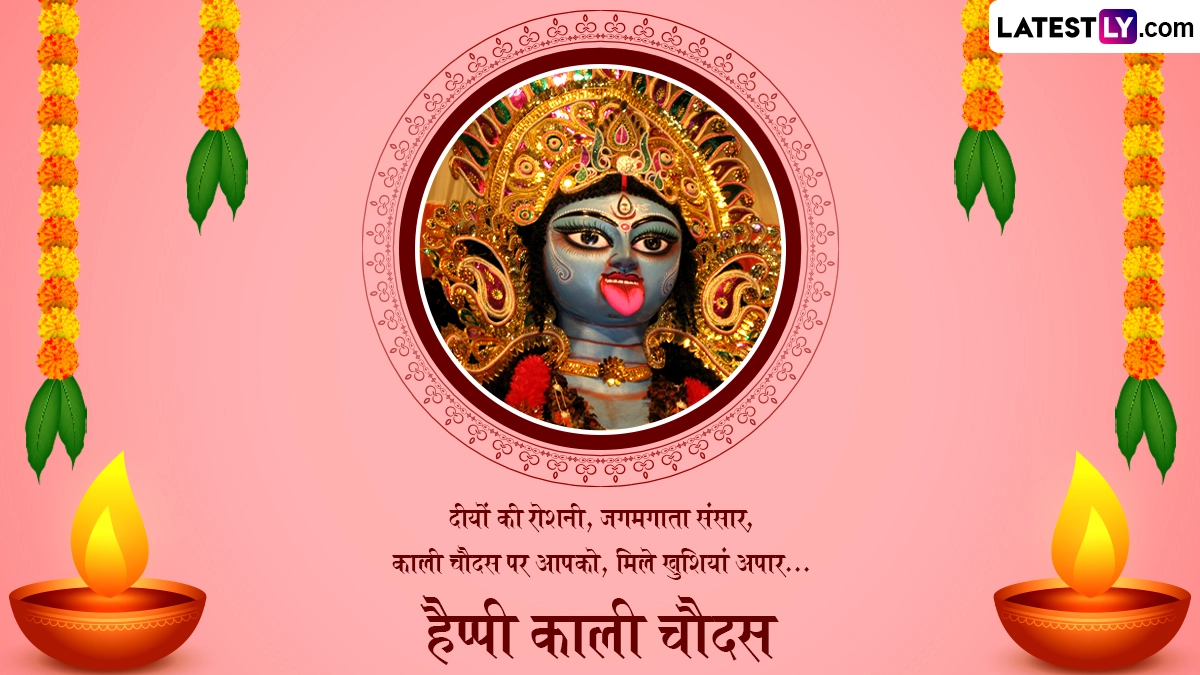काली चौदस को मां काली की उपासना का विशेष दिन माना जाता है. इस दिन भक्त मानसिक और शारीरिक दुखों से मुक्ति के लिए पूजा करते हैं. इसके साथ ही नकारात्मकता और बुरी शक्तियों को दूर करने के लिए इस दिन मां काली की उपासना की जाती है. इस अवसर पर आप इन शानदार हिंदी मैसेजेस, कोट्स, वॉट्सऐप विशेज, जीआईएफ ग्रीटिंग्स और फोटो एसएमएस के जरिए प्रियजनों से हैप्पी काली चौदस कह सकते हैं.