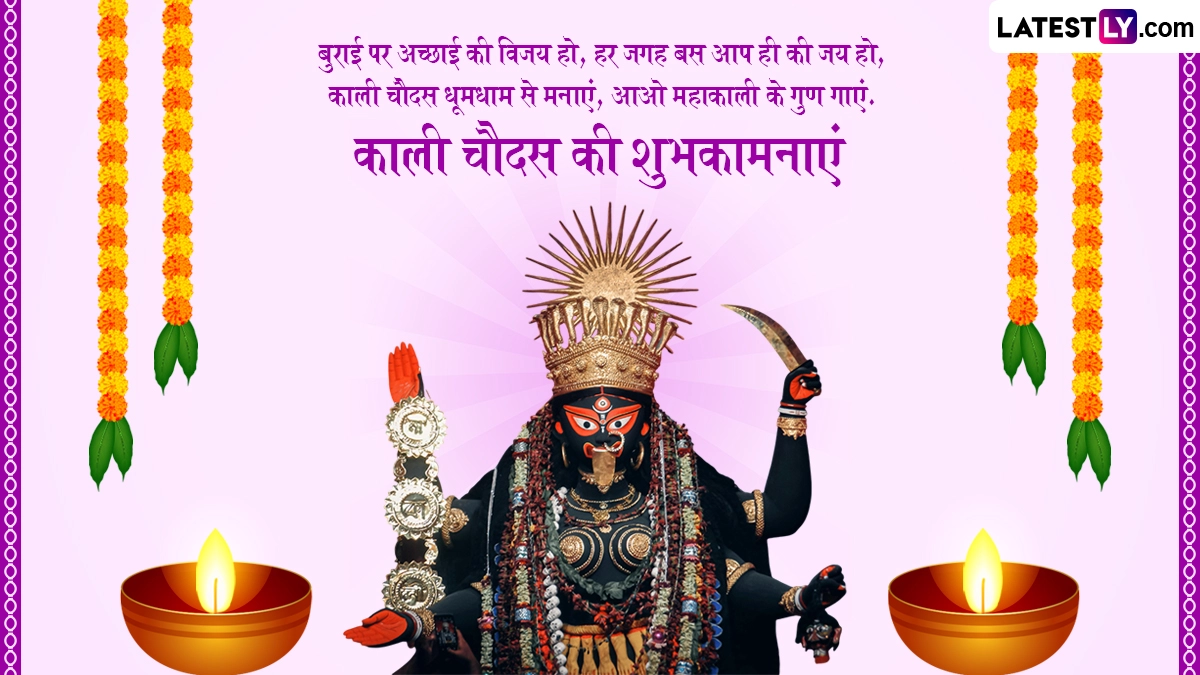 Kali Chaudas 2025 Wishes in Hindi: हिंदू धर्म में दिवाली (Diwali) को सबसे बड़ा त्योहार माना जाता है, जो पांच दिनों तक चलता है. पांच दिनों तक चलने वाले दिवाली उत्सव की शुरुआत धनतेरस से होती है और समापन भाई दूज के साथ होता है, जबकि कार्तिक मास की अमावस्या को दीपावली यानी लक्ष्मी पूजन का त्योहार मनाया जाता है. दीपावली से ठीक एक दिन पहले छोटी दिवाली (Chhoti Diwali) मनाई जाती है, जिसे नरक चतुर्दशी (Narak Chaturdashi), रूप चौदस (Roop Chaudas), भूत चतुर्दशी (Bhoot Chaturdashi) और काली चौदस (Kali Chaudas) के नाम से भी जाना जाता है. इस साल 19 अक्टूबर 2025 को छोटी दिवाली यानी काली चौदस का पर्व मनाया जा रहा है. काली चौदस के पर्व को पश्चिम बंगाल में मां काली के जन्मदिन के तौर पर मनाया जाता है. कहा जाता है कि दस महाविद्याओं में शुमार मां काली की पूजा करने से भक्तों को बुरी शक्तियों से लड़ने की ताकत मिलती है और मां स्वंय अपने भक्तों की रक्षा करती हैं.
