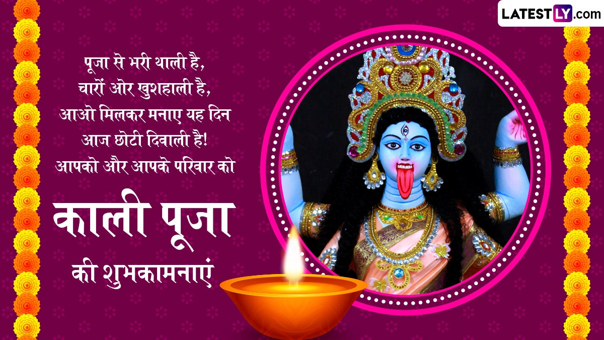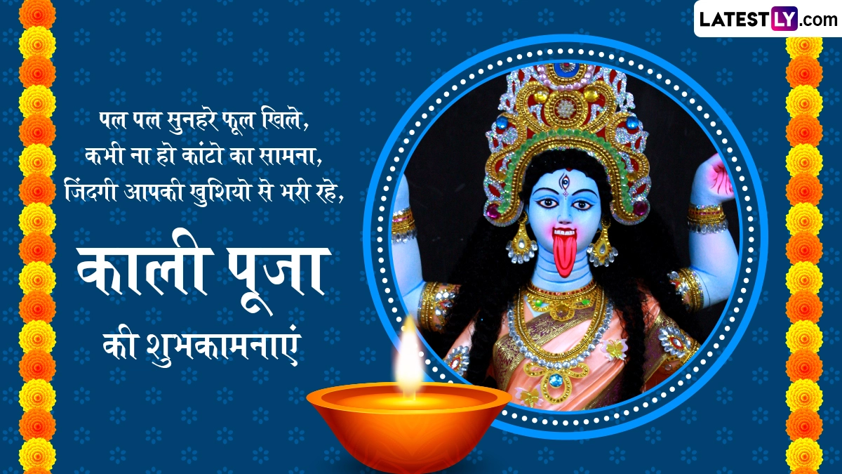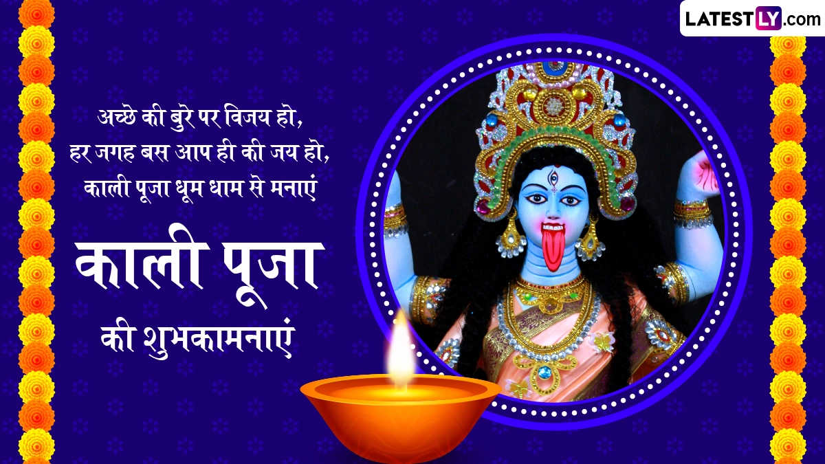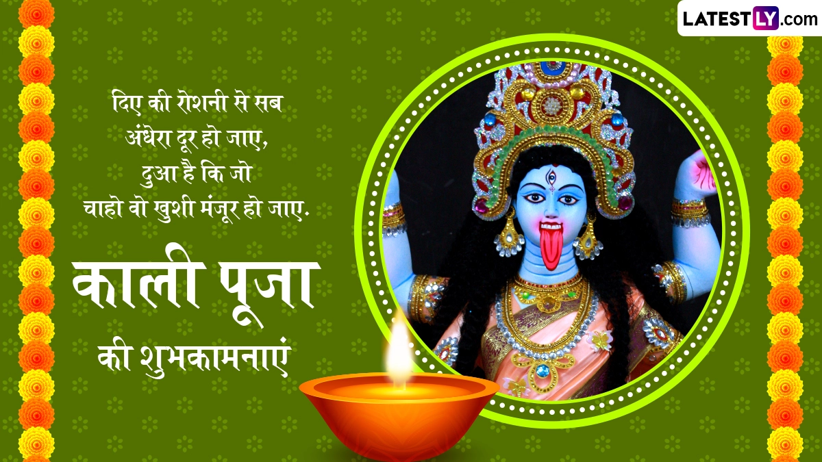 कहा जाता है कि मां काली की पूजा करने से भय, रोग और दुर्भाग्य दूर होता है. इसके प्रभाव से आत्मबल में बढ़ोत्तरी होती है, शत्रुओं का नाश होता है और जीवन में सकारात्मक ऊर्जा का संचार होता है. मां काली को प्रसन्न करने के लिए भक्त तांत्रिक विधियों के साथ दीपावली की रात विशेष पूजा करते हैं. ऐसे में इस खास अवसर पर आप इन भक्तिमय हिंदी विशेज, कोट्स, वॉट्सऐप मैसेजेस, फेसबुक ग्रीटिंग्स के जरिए प्रियजनों को काली पूजा की बधाई दे सकते हैं.