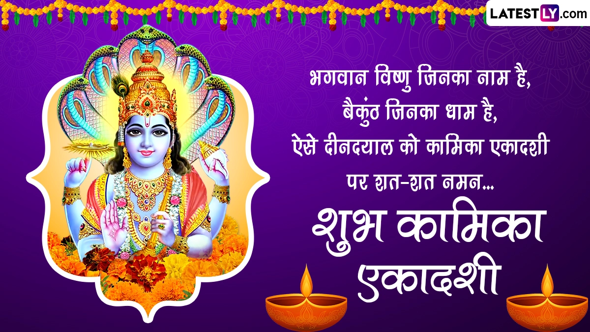 मान्यता है कि कामिका एकादशी का व्रत रखने और पूजन करने से न सिर्फ भगवान विष्णु बल्कि पितरों का आशीर्वाद भी प्राप्त होता है. इस व्रत के प्रभाव से सभी बिगड़े हुए काम भी बनने लगते हैं और मृत्यु के बाद मोक्ष की प्राप्ति का द्वार खुल जाता है. इस अवसर पर आप इन हिंदी विशेज, वॉट्सऐप स्टिकर्स, जीआईएफ ग्रीटिंग्स, कोट्स और एचडी इमेजेस को भेजकर प्रियजनों को शुभ कामिका एकादशी कह सकते हैं.