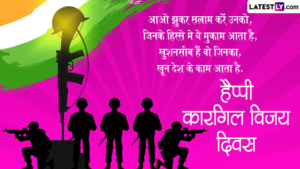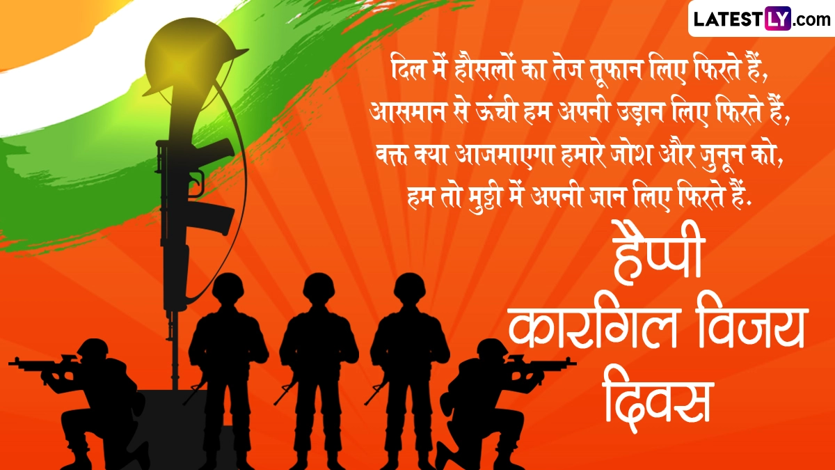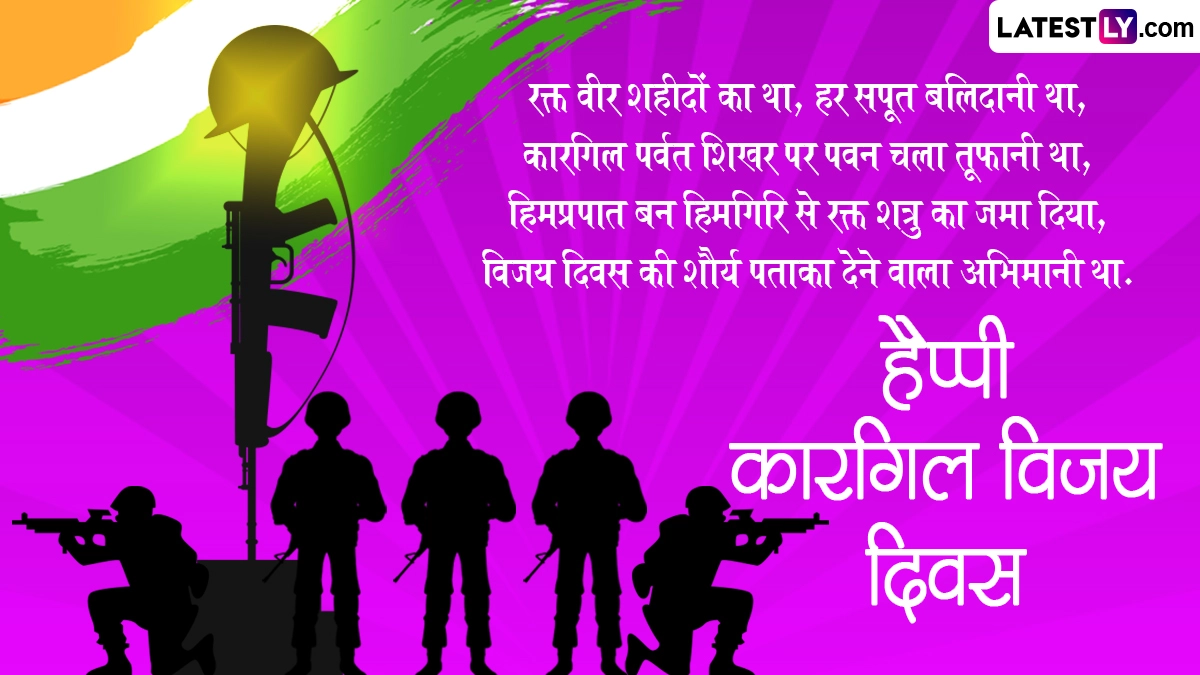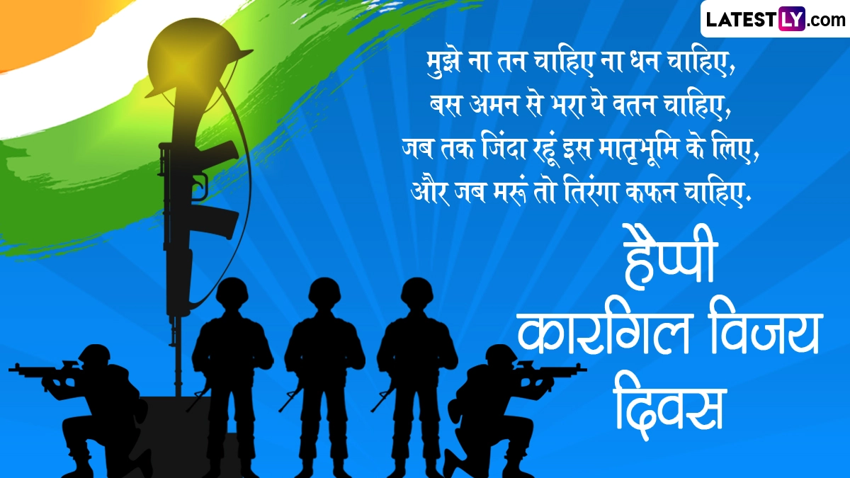 कारगिल विजय दिवस का जश्न मनाने के लिए इस दिन कई कार्यक्रमों का आयोजन किया जाता है. इस दिन भारत-पाकिस्तान युद्ध में शहीद हुए सैनिकों को याद किया जाता है, साथ ही शहीदों को श्रद्धांजलि अर्पित की जाती है. ऐसे में इस खास अवसर पर आप इन हिंदी मैसेजेस, वॉट्सऐप विशेज, कोट्स, जीआईएफ ग्रीटिंग्स को भेजकर हैप्पी कारगिल विजय दिवस विश करते हुए इस दिन का जश्न मना सकते हैं.
