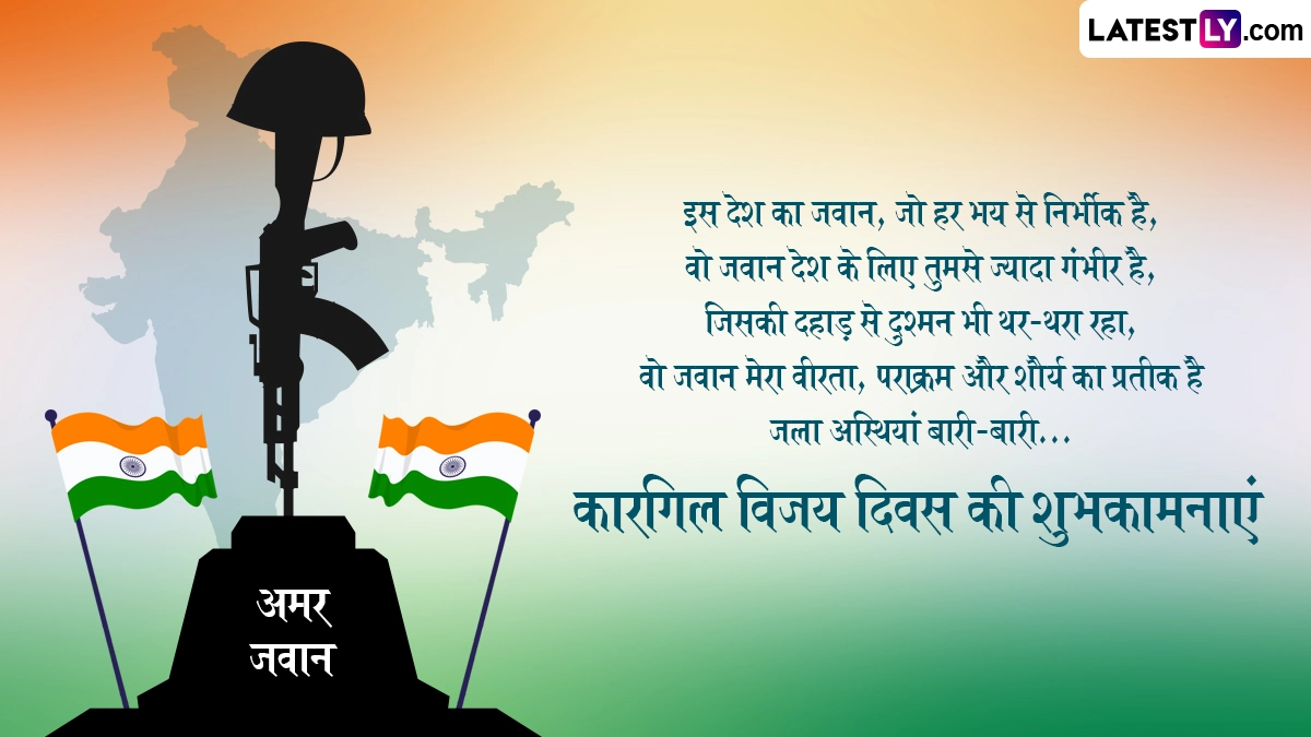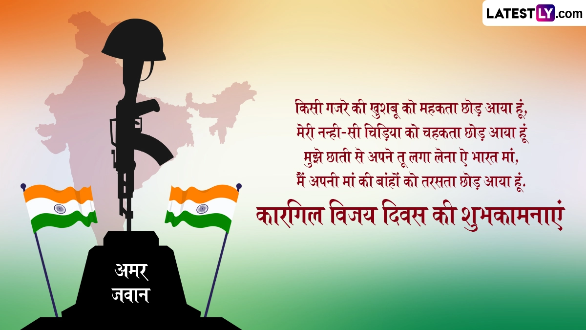 Kargil Vijay Diwas 2025 Wishes in Hindi: भारत के इतिहास में कई युद्ध लड़े गए, जिनमें से एक है कारगिल का युद्ध (Kargil War). भारत-पाकिस्तान के बीच हुआ यह युद्ध न सिर्फ सैनिक पराक्रम का प्रतीक है, बल्कि यह राष्ट्रीय एकता, संकल्प और बलिदान की मिसाल भी पेश करता है. इस युद्ध की जीत को कारगिल विजय दिवस के तौर पर हर साल 26 जुलाई को मनाया जाता है. भारतीय सशस्त्र बलों (Indian Armed Forces) के जवानों की वीरता की सराहना करने के लिए मनाए जाने वाले कारगिल विजय दिवस (Kargil Vijay Diwas) की इस साल 26वीं वर्षगांठ मनाई जा रही है. यह दिन न सिर्फ सैनिकों की विजय की याद दिलाता है, बल्कि यह उन वीर सैनिकों को श्रद्धांजलि अर्पित करने का भी अवसर है, जिन्होंने देश सेवा में अपने प्राण न्योछावर कर दिए.
