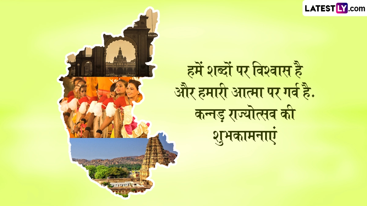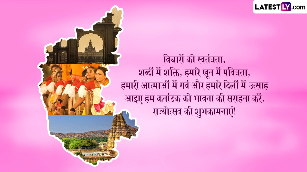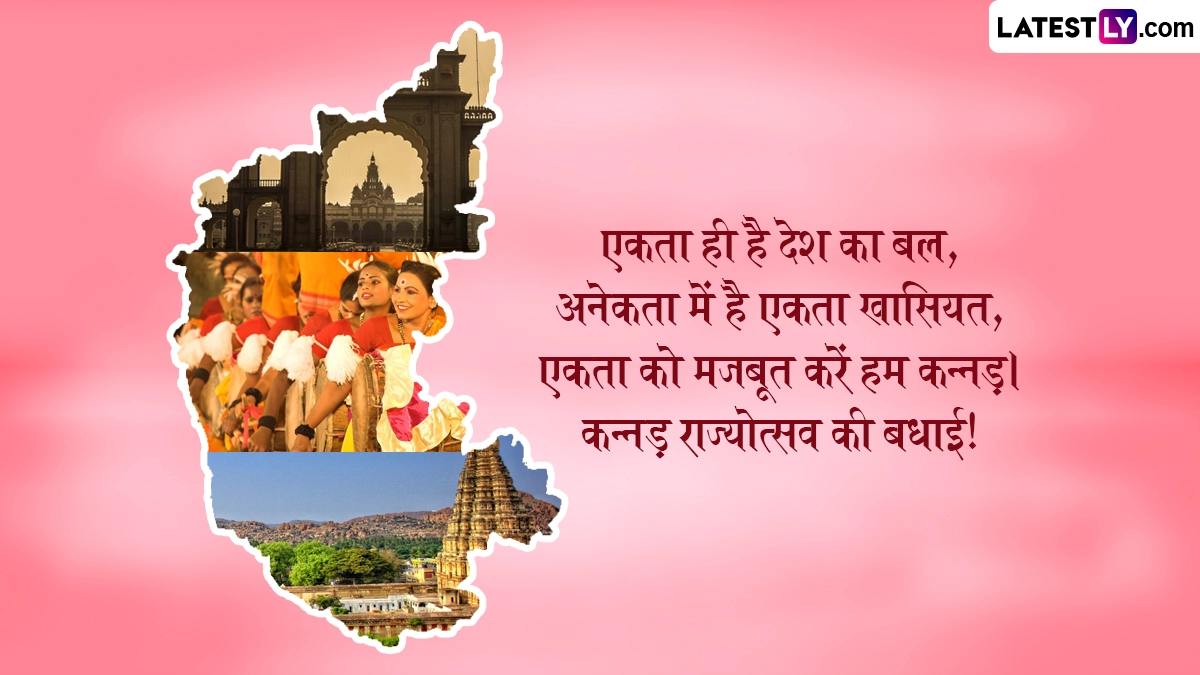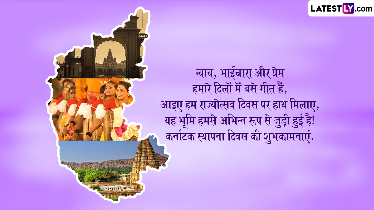 Karnataka Formation Day 2024 Messages: कर्नाटक राज्योत्सव (Karnataka Formation Day 2024) जिसे कर्नाटक राज्य दिवस (Karnataka State Day) के रूप में भी जाना जाता है, हर साल 1 नवंबर को मनाया जाने वाला एक लोकप्रिय अवसर है. यह दिन, जो राज्य के गठन की वर्षगांठ का प्रतीक है, कर्नाटक में एक राज्य सार्वजनिक अवकाश है और दुनिया भर में कन्नड़ लोगों द्वारा मनाया जाता है. यह 1956 का वह दिन था जब दक्षिण-पश्चिमी भारत के सभी कन्नड़ भाषा बोलने वाले क्षेत्रों को मिलाकर कर्नाटक राज्य बनाया गया था. राज्योत्सव दिवस पूरे कर्नाटक में बहुत खुशी और जोश के साथ मनाया जाता है. इस दिन पूरा राज्य उत्सवी माहौल में रहता है, क्योंकि पूरे राज्य में अलग-अलग जगहों पर लाल और पीले रंग के कन्नड़ झंडे फहराए जाते हैं. जैसा कि हम कर्नाटक राज्य स्थापना दिवस 2024 मना रहे हैं, यहां आपको वार्षिक उत्सव के इतिहास और महत्व के बारे में जानने की ज़रूरत है. कर्नाटक राज्योत्सव 2024 या कर्नाटक राज्य दिवस शुक्रवार 1 नवंबर को मनाया जाएगा.