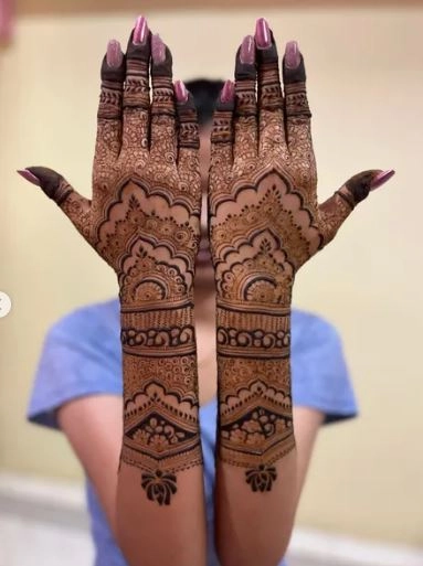 करवा चौथ के लिए ट्रेडिशनल बैक हैंड मेहंदी