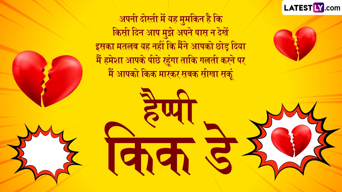 Kick Day 2025 Wishes: 15 फरवरी से शुरू होने वाले एंटी-वेलेंटाइन वीक में स्लैप डे, किक डे (Kick Day), परफ्यूम डे, फ्लर्ट डे, कन्फेशन डे, मिसिंग डे और ब्रेकअप डे सहित कई थीम वाले दिन शामिल हैं. 14 फरवरी को वेलेंटाइन डे के बाद मनाया जाने वाला यह सप्ताह प्यार और रिश्तों पर एक वैकल्पिक दृष्टिकोण प्रस्तुत करता है. किक डे एंटी-वेलेंटाइन वीक इवेंट से अलग नहीं है, जिसका प्यार से कोई लेना-देना नहीं है क्योंकि यह प्यार के दिनों के लिए आदर्श मारक है. यह महत्वपूर्ण है क्योंकि यह लोगों को विशेष रूप से वे जो वेलेंटाइन डे नहीं मनाते हैं या जिनके पास नकारात्मक रोमांटिक अनुभव हो सकते हैं, उन्हें दबी हुई भावनाओं और निराशाओं को बाहर निकालने का मौका देता है. किक डे एक ऐसा उत्सव है जो लोगों के जीवन से अनसुलझे रोमांटिक रिश्तों, असफलताओं और अतीत की चोटों को 'किक' करने का प्रतिनिधित्व करता है.