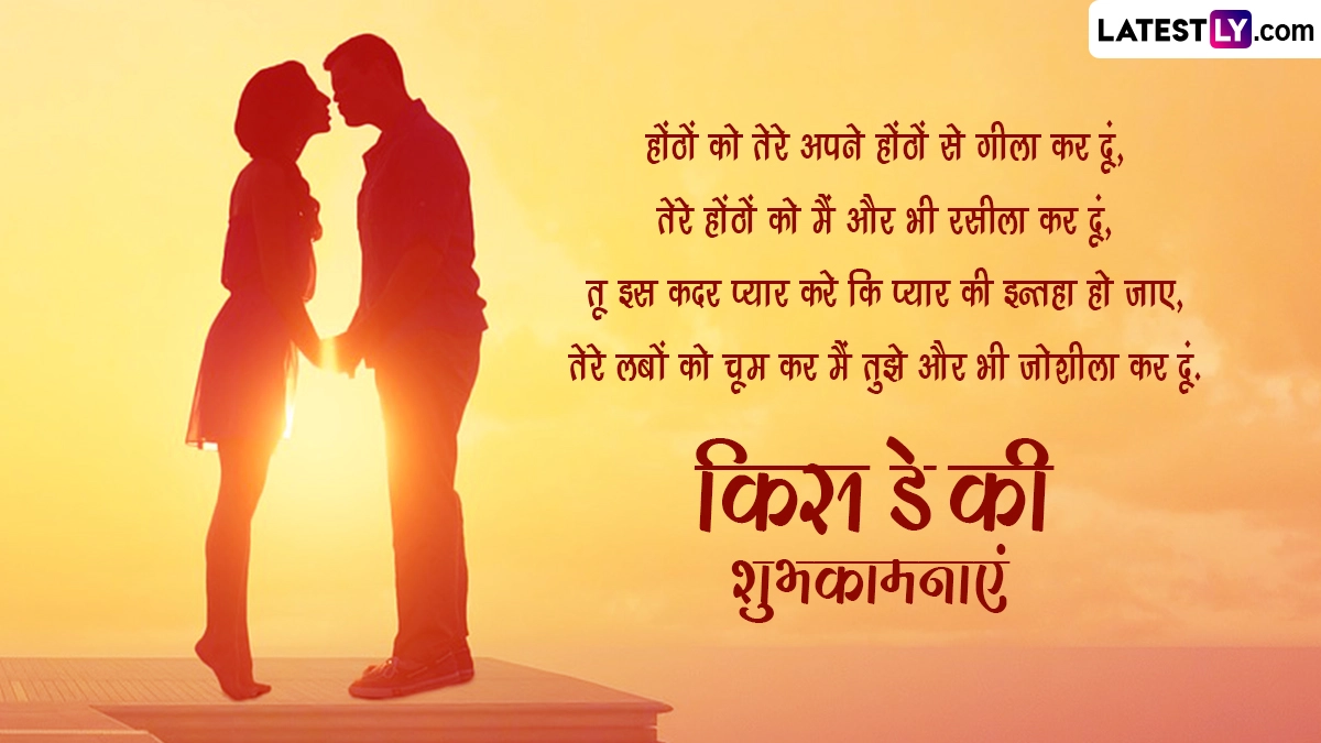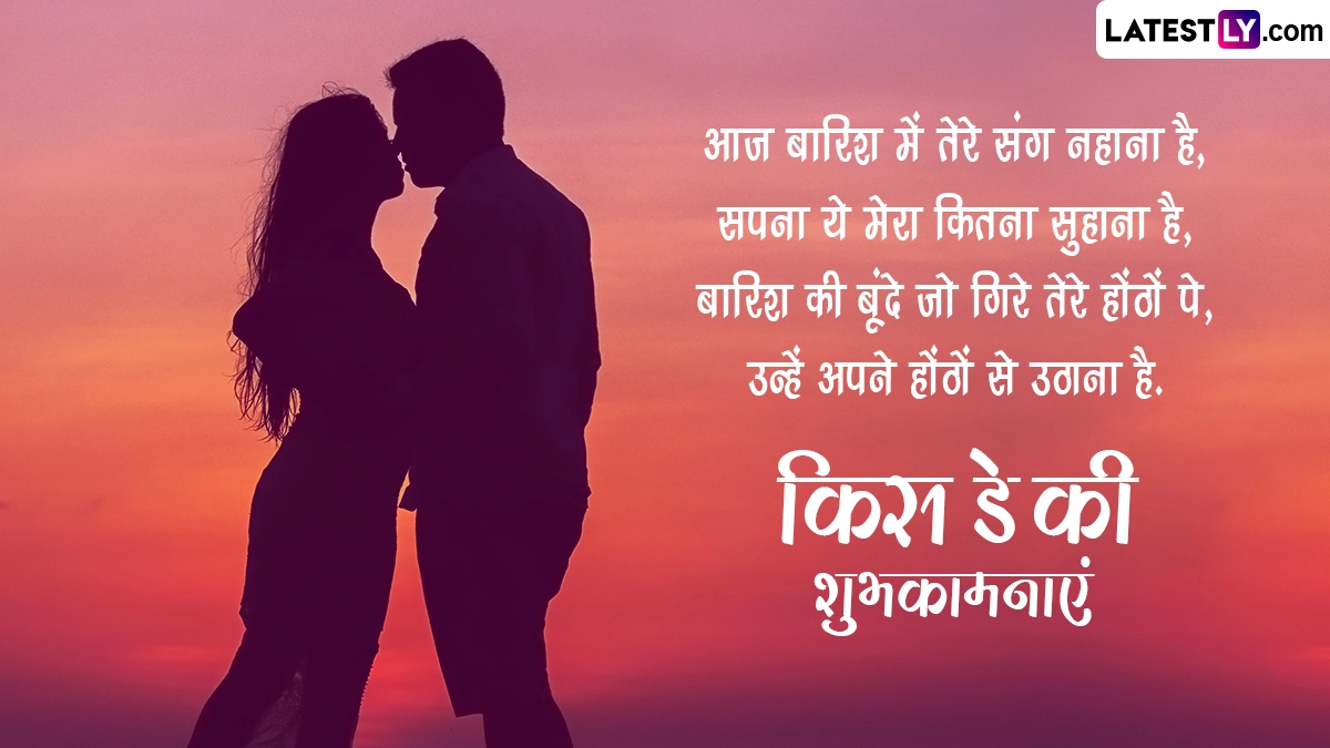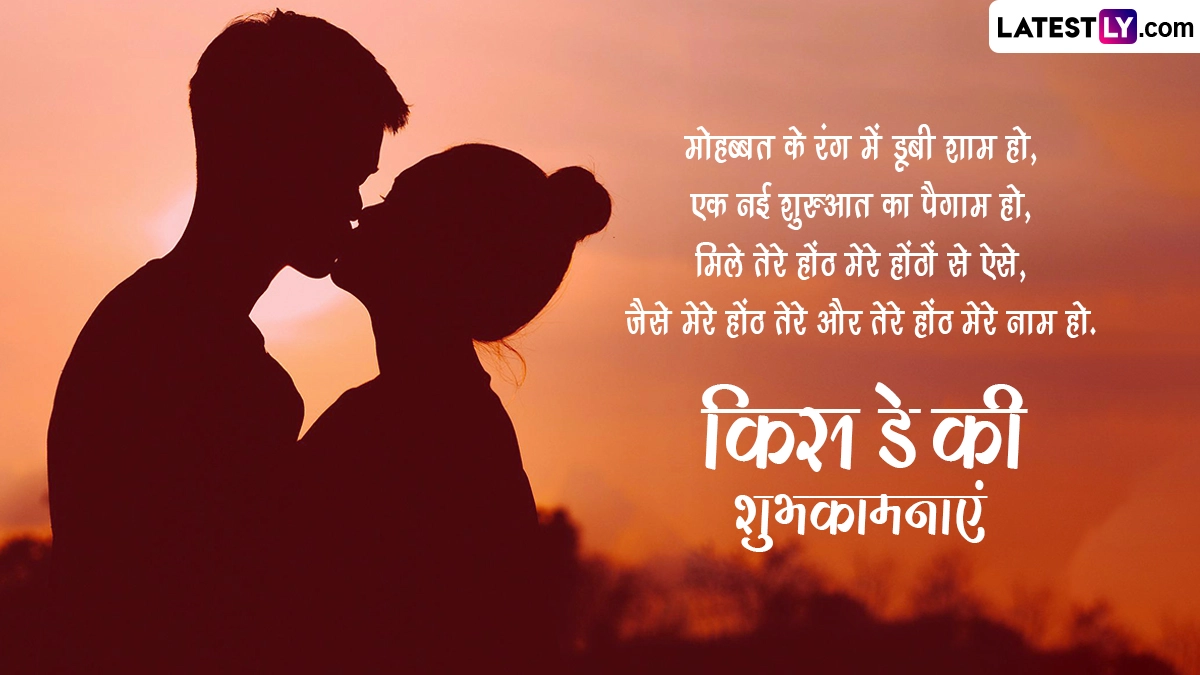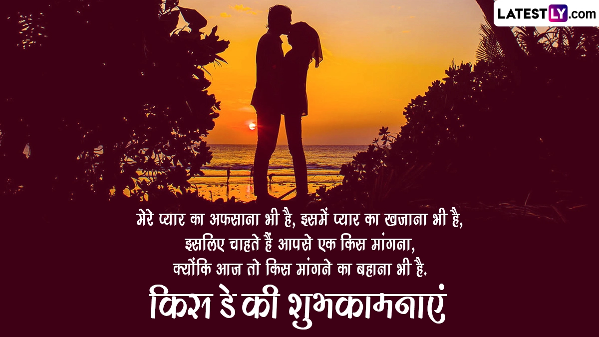 Kiss Day 2024 Wishes in Hindi: मंथ ऑफ लव (Month of Love) यानी फरवरी महीने (February Month) की 7 फरवरी से 14 फरवरी तक की अवधि दुनिया भर के कपल्स के लिए बेहद खास मानी जाती है, क्योंकि फरवरी महीने में 7 फरवरी से 14 फरवरी तक वैलेंटाइन वीक (Valentine Week) मनाया जाता है. इस सप्ताह का हर दिन प्यार के एक स्पेशल डे को समर्पित है. वैलेंटाइन वीक के दौरान रोज डे (Rose Day), प्रपोज डे (Propose Day), चॉकलेट डे (Chocolate Day), टेडी डे (Teddy Day), हग डे (Hug Day) मनाने के बाद 13 फरवरी यानी वैलेंटाइन डे से ठीक एक दिन पहले किस डे (Kiss Day) मनाया जाता है. इस दिन कपल्स एक-दूसरे को प्यार से किस (Kiss) करके अपनी फीलिंग्स को जाहिर करते हैं. ऐसा कहा जाता है कि इस दिन किस करने से प्यार और भी गहरा होता है.