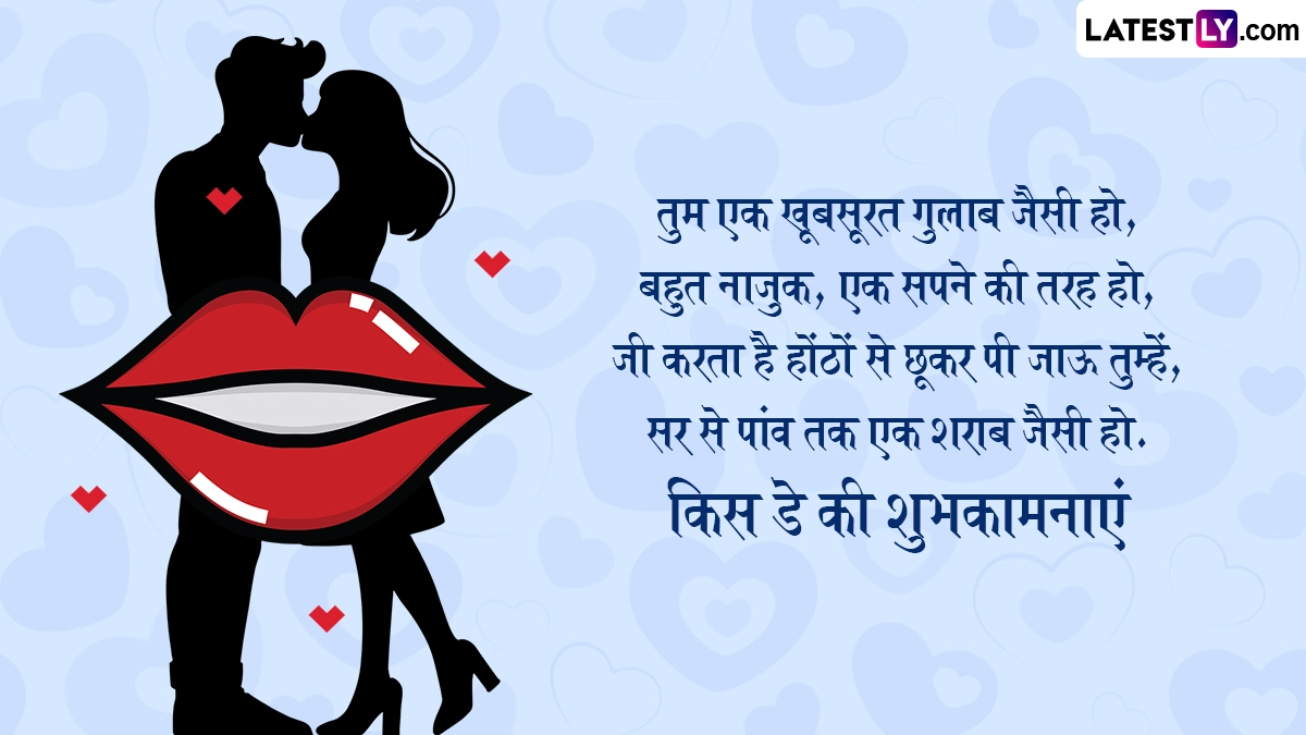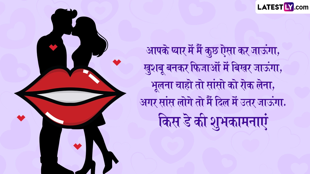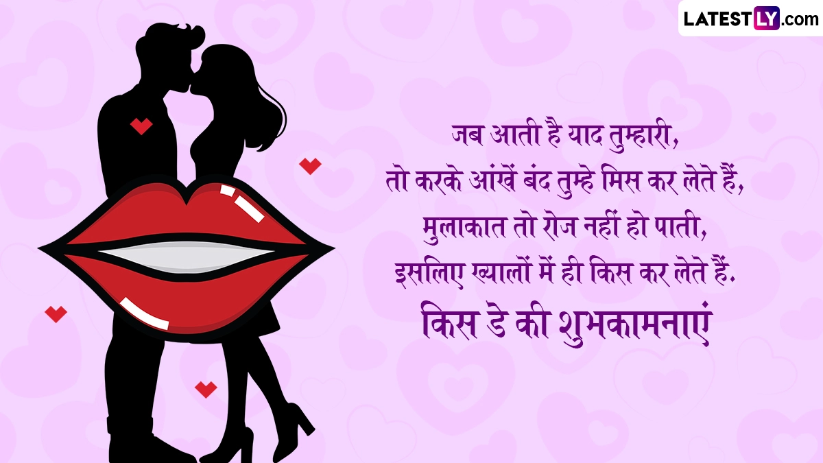 Kiss Day 2025 Wishes in Hindi: वैलेंटाइन डे (Valentine's Day) मनाने से ठीक एक दिन पहले दुनिया भर के कपल्स किस डे (Kiss Day) सेलिब्रेट करते हैं. 13 फरवरी को मनाए जाने वाले किस डे पर दुनिया भर के प्रेमी जोड़े और शादीशुदा कपल्स एक-दूसरे को प्यार से किस (Kiss) करके अपनी फीलिंग्स को जाहिर करते हैं. कहा जाता है कि इस दिन किस करने से कपल्स के बीच प्यार और रिश्ता काफी गहरा होता है. बता दें कि मंथ ऑफ लव यानी फरवरी महीने में 7 फरवरी से 14 फरवरी तक प्यार का सप्ताह यानी वैलेंटाइन वीक मनाया जाता है. वैलेंटाइन वीक के दौरान रोज डे (Rose Day), प्रपोज डे (Propose Day), चॉकलेट डे (Chocolate Day), टेडी डे (Teddy Day), हग डे (Hug Day) मनाने के बाद 13 फरवरी यानी वैलेंटाइन डे से ठीक एक दिन पहले किस डे (Kiss Day) मनाया जाता है.