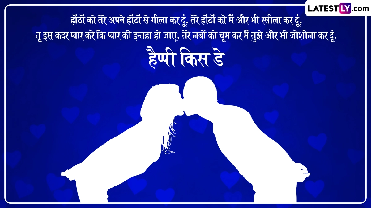 वैलेंटाइन वीक के सातवें दिन यानी 13 फरवरी को 'किस डे' मनाया जाता है. यदि आप इस 'किस डे' को यादगार बनाना चाहते हैं, तो उपहारों के साथ-साथ इन खूबसूरत हिंदी मैसेजेस, शायरी, वॉट्सऐप विशेज, जीआईएफ ग्रीटिंग्स, फोटो एसएमएस के जरिए अपने पार्टनर को विश कर सकते हैं, साथ ही रोमांटिक अंदाज में अपना हाल-ए-दिल भी उनसे कह सकते हैं.