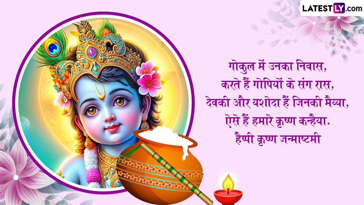 उत्तर भारत से लेकर दक्षिण भारत तक, देशभर में कान्हा के जन्मोत्सव को हर्षोल्लास के साथ मनाया जाता है. जन्माष्टमी पर भक्त श्रीकृष्ण के बाल रूप की पूजा करते हैं, जिन्हें लड्डू गोपाल, बाल कृष्ण या बाल गोपाल कहा जाता है. कान्हा के जन्मोत्सव के पावन अवसर पर आप इन शानदार हिंदी मैसेजेस, वॉट्सऐप विशेज, जीआईएफ ग्रीटिंग्स, कोट्स, फोटो एसएमएस के जरिए अपनों को बधाई दे सकते हैं.