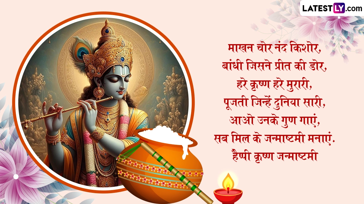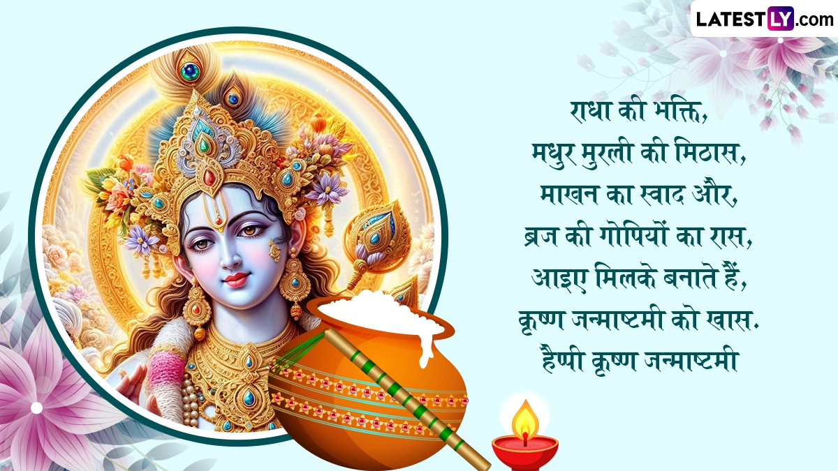 Krishna Janmashtami 2025 Messages in Hindi: हिंदू पंचांग अनुसार, कृष्ण जन्माष्टमी (Krishna Janmashtami) का पावन पर्व भाद्रपद मास के कृष्ण पक्ष की अष्टमी तिथि और रोहिणी नक्षत्र के शुभ संयोग में मनाया जाता है. धार्मिक मान्यताओं अनुसार इसी तिथि और नक्षत्र में रात 12 बजे भगवान विष्णु (Bhagwan Vishnu) के आठवें अवतार भगवान श्रीकृष्ण (Bhagwan Shri Krishna) का जन्म हुआ था, लेकिन इस बार अष्टमी तिथि और रोहिणी नक्षत्र अलग-अलग दिन पड़ रहा है, इसलिए इस स्थिति में उदया तिथि के अनुसार इस साल 16 अगस्त 2025 को जन्माष्टमी मनाई जा रही है. भगवान श्रीकृष्ण का जन्म द्वापर युग में हुआ था और ज्योतिषीय गणना के अनुसार इस साल भगवान श्रीकृष्ण का 5252वां जन्मोत्सव मनाया जा रहा है. श्रीहरि के अवतार श्रीकृष्ण को प्रेम, करुणा, स्नेह और भक्ति का देवता माना जाता है. कान्हा भारत ही नहीं, बल्कि पूरे विश्व में सबसे लोकप्रिय और प्रिय देवताओं में से एक हैं.