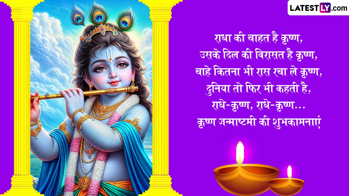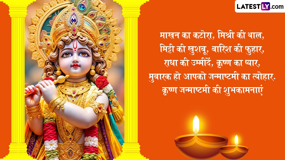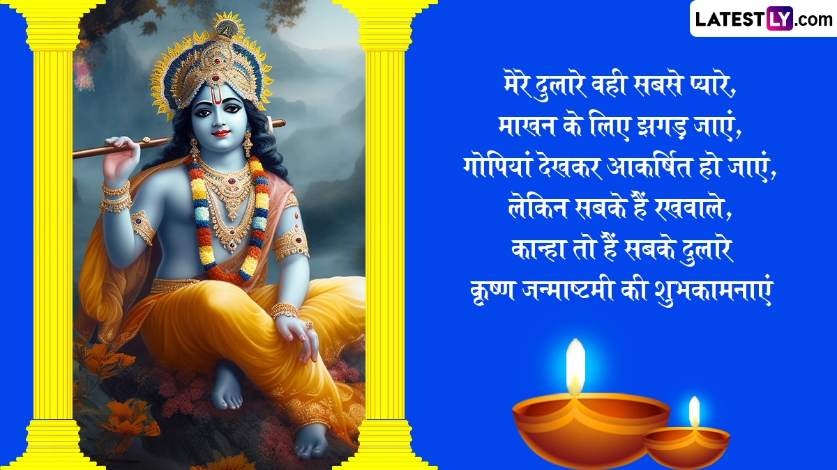 Krishna Janmashtami 2025 Wishes in Hindi: जगत के पालनहार भगवान विष्णु (Bhagwan Vishnu) ने धरती से अधर्म और पाप का विनाश करके, धर्म और पुण्य की स्थापना के लिए कई अवतार लिए हैं, जिनमें से एक है श्रीकृष्ण अवतार (Shri Krishna). पौराणिक मान्यताओं के अनुसार, द्वापर युग में भाद्रपद मास के कृष्ण पक्ष की अष्टमी तिथि को श्रीहरि ने श्रीकृष्ण के रूप में आठवां अवतार लिया था, इसलिए इस पावन तिथि पर हर साल श्रीकृष्ण जन्माष्टमी (Krishna Janmashtami) का त्योहार देशभर में पूरे जोश और उत्साह के साथ मनाया जाता है. इस साल कान्हा का जन्मोत्सव 16 अगस्त 2025 को मनाया जा रहा है. कहा जाता है कि भगवान श्रीहरि (Shri Hari) के आठवें अवतार श्रीकृष्ण का जन्म भाद्रपद मास के कृष्ण पक्ष की अष्टमी को रोहिणी नक्षत्र में हुआ था, इसलिए इस दिन लोग व्रत रखकर विधि-विधान से श्रीकृष्ण की पूजा करते हैं. कृष्ण जन्माष्टमी के दिन ध्यान, जप, भजन-कीर्तन और रात्रि जागरण का विशेष महत्व बताया जाता है.