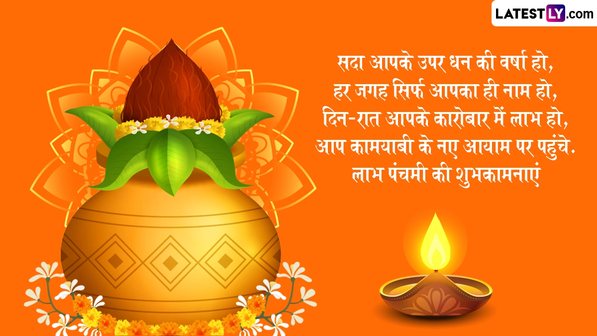 Labh Panchami 2025 Messages: लाभ पंचमी (Labh Panchami) गुजरात में व्यापक रूप से मनाया जाने वाला एक शुभ त्योहार है. इस वर्ष यह बुधवार, 26 अक्टूबर 2025 को मनाया जाएगा. सौभाग्य पंचमी (Saubhagya Panchami), ज्ञान पंचमी (Gyan Panchami) और लाभ पंचम (Labh Pancham) जैसे कई नामों से प्रसिद्ध इस दिन का समृद्धि, ज्ञान और सौभाग्य से गहरा संबंध है. गुजरात के विभिन्न क्षेत्रों में इसे सौभाग्य-लाभ पंचमी भी कहा जाता है, जिसमें "सौभाग्य" का अर्थ अच्छा भाग्य और "लाभ" का अर्थ लाभ होता है. गुजरात में लाभ पंचमी दिवाली का अंतिम दिन माना जाता है. नए बिजनेस शुरू करने के लिए लाभ पंचमी का दिन बहुत शुभ मनाता जाता है. इस दिन कोई भी पूजा पाठ करना शुभ माना जाता है. इस दिन गृह प्रवेश भी बहुत शुभ माना जाता है. लाभ पंचमी पर व्यवसायी अपने बही खातों की पूजा करते हैं. यह भी पढ़ें: Chhath Puja 2025 Wishes: छठ पूजा के इन शानदार हिंदी WhatsApp Messages, Facebook Greetings, Quotes के जरिए दें शुभकामनाएं