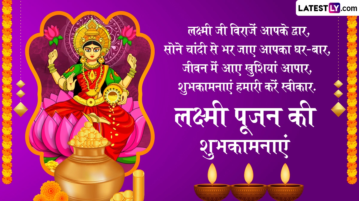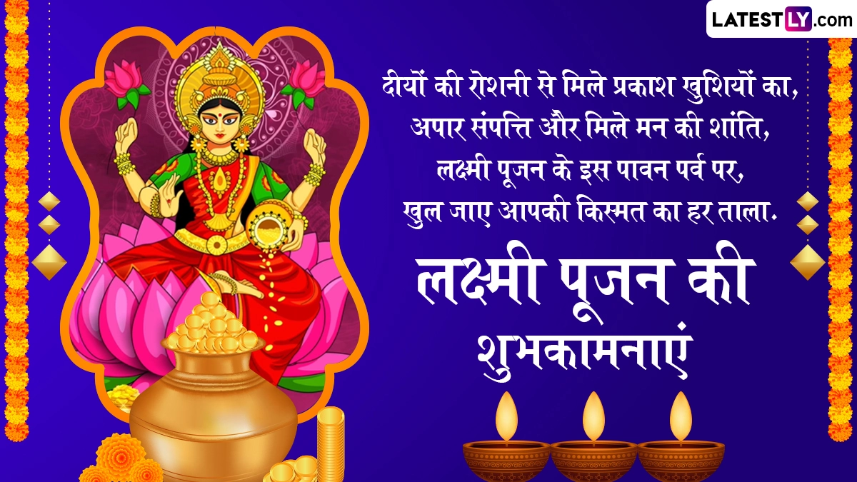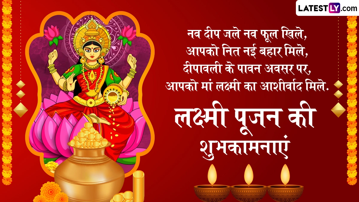 कहा जाता है कि दीपावली की रात मां लक्ष्मी पृथ्वी पर भ्रमण करती हैं और अपने भक्तों को सुख-समृद्धि का वरदान देती हैं. मां लक्ष्मी का स्वागत करने के लिए लोग घरों के मुख्य द्वार पर रंगोली बनाते हैं, दीयों से घर-आंगन को रोशन करते हैं. इस अवसर पर आप इन भक्तिमय हिंदी विशेज, कोट्स, वॉट्सऐप मैसेजेस, फेसबुक ग्रीटिंग्स के जरिए आप अपनों को लक्ष्मी पूजन की शुभकामनाएं दे सकते हैं.