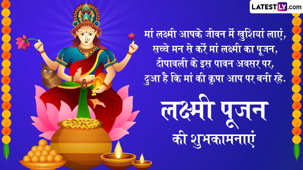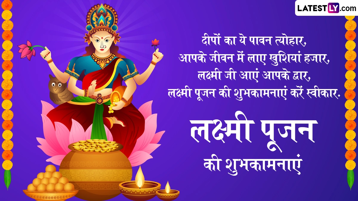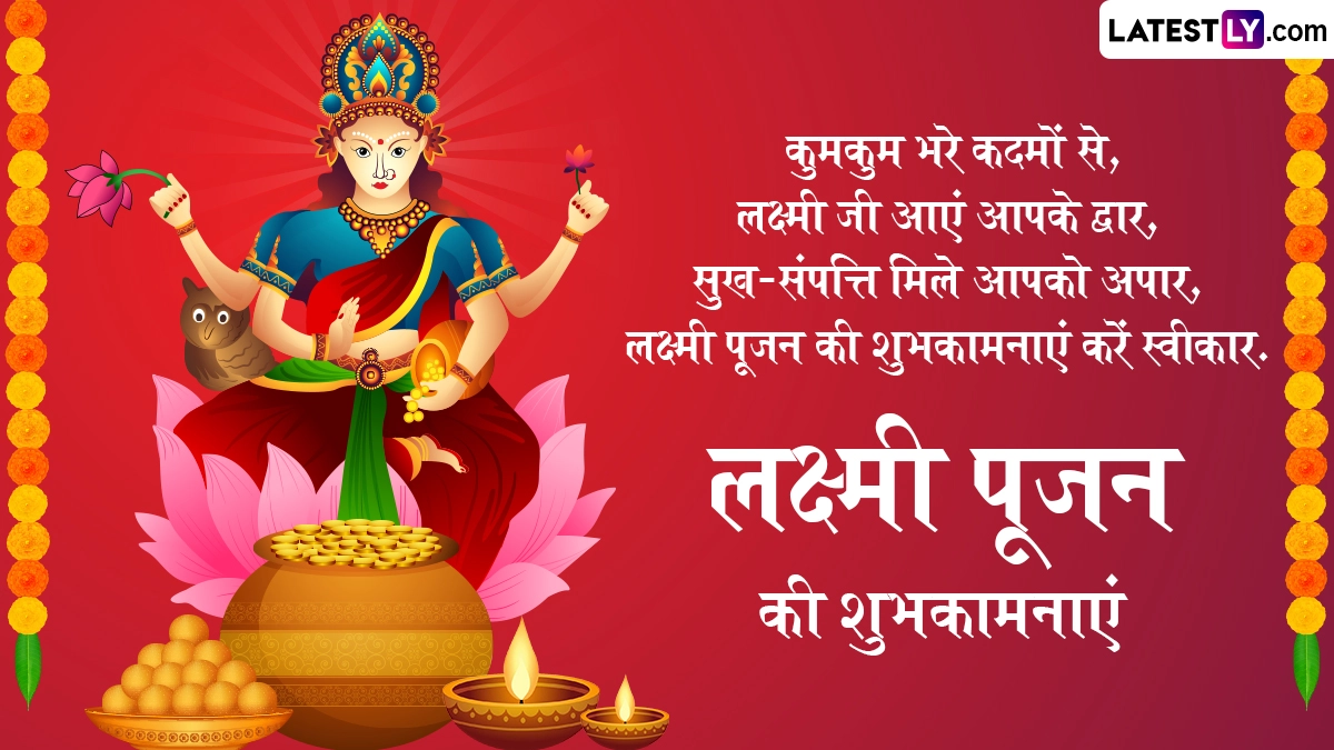 Lakshmi Pujan 2025 Wishes: लक्ष्मी पूजा (Lakshmi Puja) दिवाली के दिन घर में बड़ी श्रद्धा के साथ मनाया जाने वाला त्योहार है. देवी लक्ष्मी को धन, समृद्धि और सुख की देवी माना जाता है. इस दिन, लोग अपने घरों को सजाते हैं, लक्ष्मी पूजा के लिए रंगोली बनाते हैं और देवी लक्ष्मी का आशीर्वाद पाने के लिए माता लक्ष्मी के मंत्रों का जाप करते हैं. इस दिन माता लक्ष्मी के साथ भगवान गणेश और धन के देवता कुबेर की पूजा की जाती है. दिवाली की रात लक्ष्मी पूजन का रहस्य समुद्र मंथन से जुड़ा है. मान्यता है कि दीपावली के दिन ही माता लक्ष्मी समुद्र मंथन से पृथ्वी पर प्रकट हुई थीं. भगवान विष्णु ने माता लक्ष्मी को समुद्र मंथन से प्रकट होने के बाद रात के अंधकार में खोजा था. इस कारण रात में दीप जलाने और लक्ष्मी पूजा करने का महत्व है. यह भी पढ़ें: Dhanteras 2025: सोना महंगा है तो धनतेरस पर ये वस्तुएं खरीदकर भी घर में शुभता और सौभाग्य ला सकते हैं! जानें क्या वस्तुएं खरीदें!