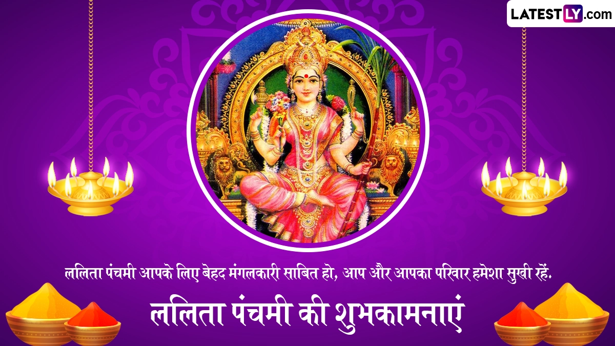 ललिता पंचमी के दिन व्रत रखने वाले भक्त मां ललिता यानी त्रिपुर सुंदरी की उपासना करते हैं, जिन्हें दस महाविद्याओं में से एक माना जाता है. यह पर्व आध्यात्मिक विकास और मां ललिता यानी त्रिपुर सुंदरी के दिव्य आशीर्वाद को प्राप्त करने का एक विशेष अवसर होता है. ऐसे में ललिता पंचमी की आप इन भक्तिमय हिंदी विशेज, कोट्स, वॉट्सऐप मैसेजेस, फेसबुक ग्रीटिंग्स के जरिए शुभकामनाएं दे सकते हैं.