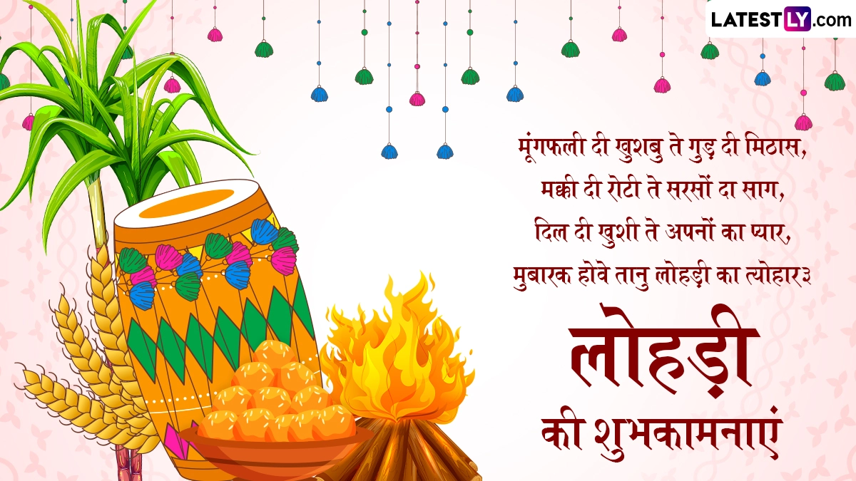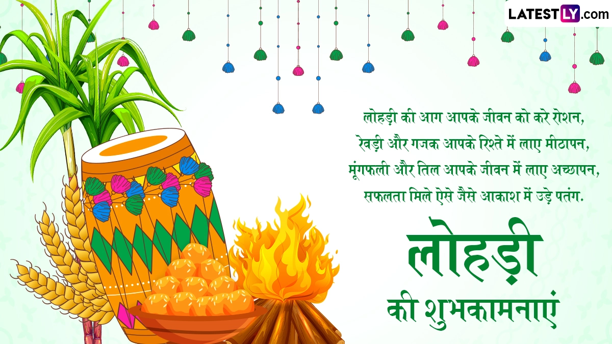 Lohri 2025 Wishes in Hindi: गन्ना, गेहूं और सरसों जैसी सर्दियों के फसलों की कटाई के प्रतीक के तौर पर उत्तर भारत के विभिन्न हिस्सों में लोहड़ी (Lohri) के त्योहार को धूमधाम से मनाया जाता है. यह किसानों (Farmers) के प्रमुख पर्वों में से एक है, जो कृषि समृद्धि और सर्दियों के मौसम से पहले बोई गई फसलों की पर्याप्त कटाई के लिए सूर्य देव और अग्नि देव के प्रति आभार व्यक्त करने का उत्सव है. इस साल 13 जनवरी 2025 को लोहड़ी का त्योहार मनाया जा रहा है. इस पर्व के जश्न के दौरान लोहड़ी की आग के चारों तरफ लोग पांरपरिक पंजाबी डांस भांगड़ा और गिद्दा करते हैं. इसके साथ सरसों दा साग और मक्के की रोटी के साथ गजक व रेवड़ी जैसे पारंपरिक व्यंजनों का सेवन किया जाता है. मकर संक्रांति (Makar Sankranti) से ठीक एक दिन पहले मनाए जाने वाले इस पर्व को सभी धर्मों के लोग धूमधाम से मनाते हैं.
