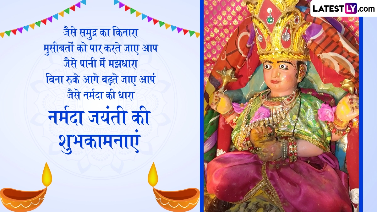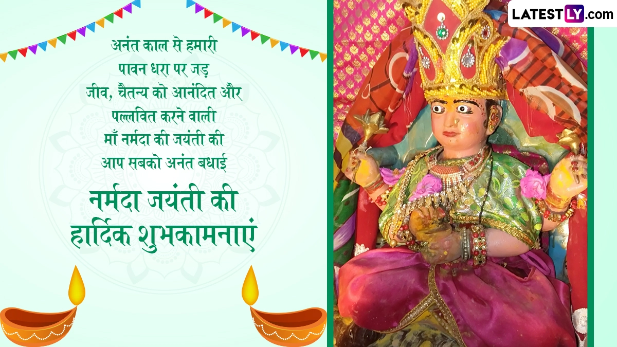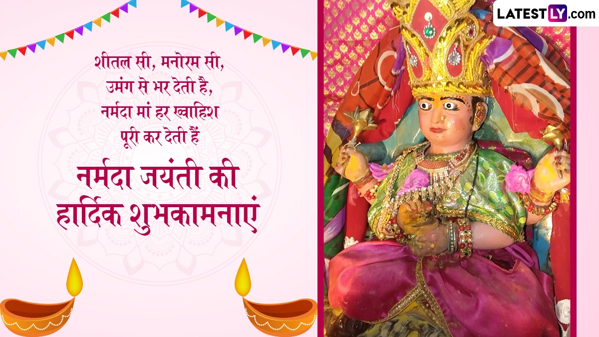 Maa Narmada Jayanti 2025 Wishes: नर्मदा जयंती (Narmada Jayanti) एक अत्यधिक पूजनीय हिंदू त्यौहार है, जिसका बहुत महत्व है क्योंकि यह पवित्र नदी नर्मदा के जन्म का स्मरण कराता है. यह महत्वपूर्ण अवसर हिंदू चंद्र कैलेंडर के माघ महीने में शुक्ल पक्ष सप्तमी को प्रतिवर्ष मनाया जाता है. इस दिन, भक्त नर्मदा नदी का सम्मान करते हैं क्योंकि उनका मानना है कि यह नदी उनके जीवन में समृद्धि और शांति लाती है. नर्मदा जयंती के लिए प्रसिद्ध स्थल मध्य प्रदेश में अमरकंटक है, जो नर्मदा नदी का उद्गम स्थल है. इस दौरान हजारों भक्त शहर के कई घाटों पर देवी को समर्पित भजन और भजन गाते हैं. शाम को देवी नर्मदा के संत और भक्त उनकी भव्य आरती करते हैं. इस साल नर्मदा जयंती 4 फरवरी को मनाई जा रही है. यह भी पढ़ें: Narmada Jayanti 2025: कब और कैसे हुआ नर्मदा का प्राकट्य? जानें इसका महत्व, मुहूर्त, पूजा-विधि एवं कथा इत्यादि!