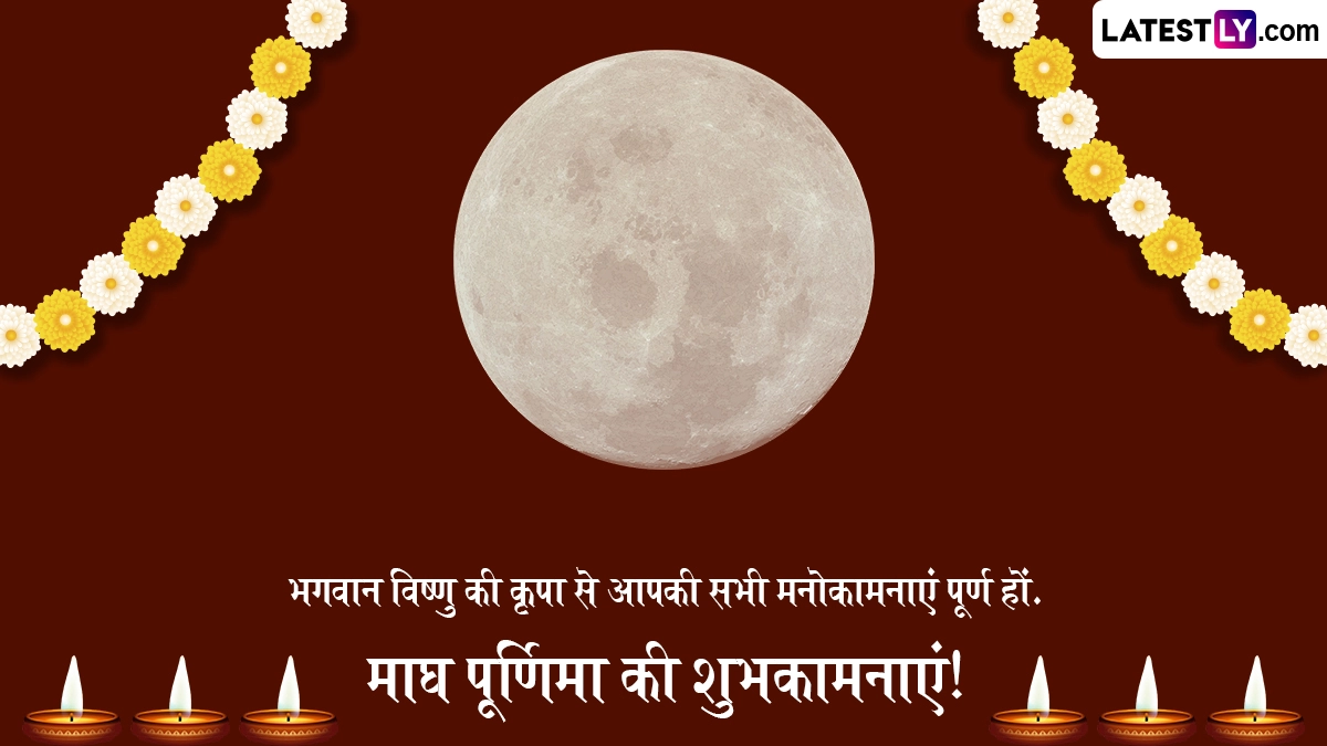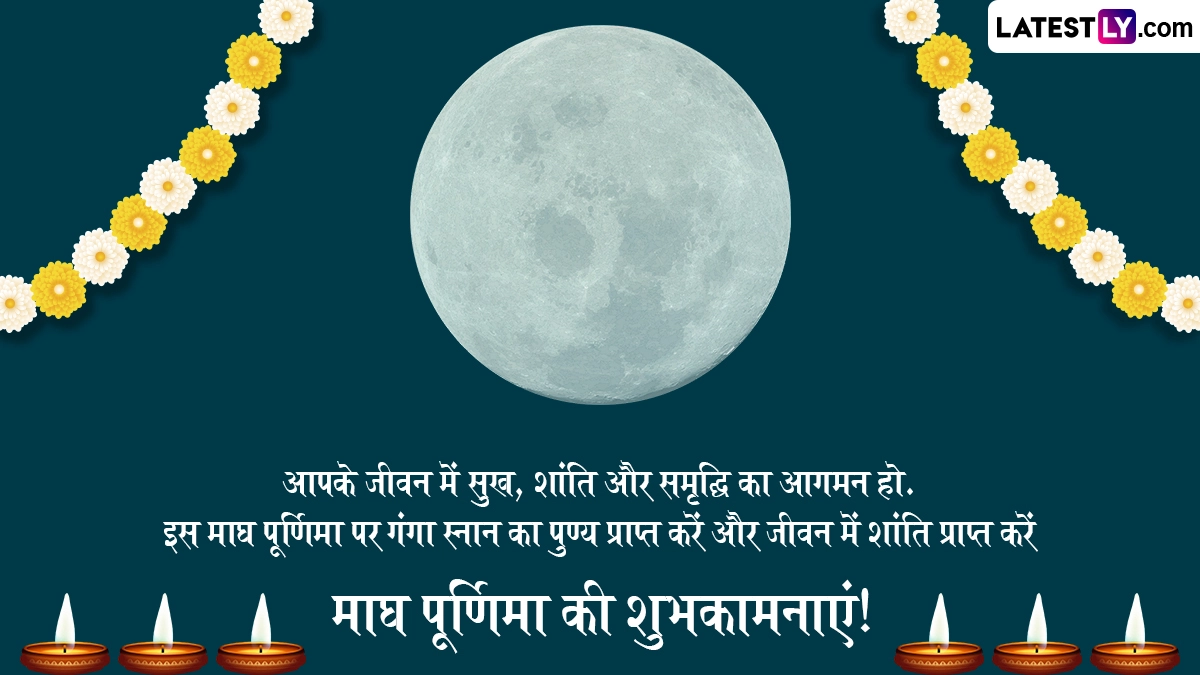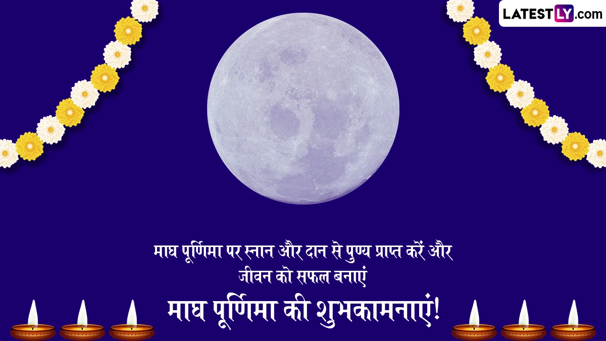 Magh Purnima 2025 Wishes: पूर्णिमा हिंदू धर्म में सबसे शुभ दिनों में से एक है, जब चंद्रमा अपने चरम पर होता है और अपनी ऊर्जा हर जगह फैलाता है. पूर्णिमा हर महीने आती है और यह दिन भगवान विष्णु को समर्पित है और भक्त व्रत रखते हैं और श्री हरि के दूसरे रूप सत्यनारायण की पूजा करते हैं. इसी तरह, यह माघ का महीना है और इसी महीने में आने वाली पूर्णिमा को माघ पूर्णिमा (Magh Purnima) के नाम से जाना जाता है. इस महीने माघ पूर्णिमा 12 फरवरी, 2025 को होगी. हिंदू कैलेंडर के अनुसार, माघ पूर्णिमा एक बहुत ही शुभ दिन है जो माघ (फरवरी) महीने की पूर्णिमा के दिन पड़ता है. इस दिन का हिंदुओं के बीच बहुत बड़ा धार्मिक और आध्यात्मिक महत्व है. इस पवित्र दिन पर लोग सत्यनारायण पूजा करने से लेकर पवित्र नदियों में विशेष रूप से गंगा नदी में पवित्र डुबकी लगाने तक कई आध्यात्मिक धार्मिक और गतिविधियाँ करते हैं. यह भी पढ़ें: Magh Purnima 2025: माघ पूर्णिमा पर भीड़ से सुरक्षित रहकर ऐसे भी प्राप्त कर सकते हैं, महाकुंभ स्नान का पुण्य फल! जानें ये उपाय!