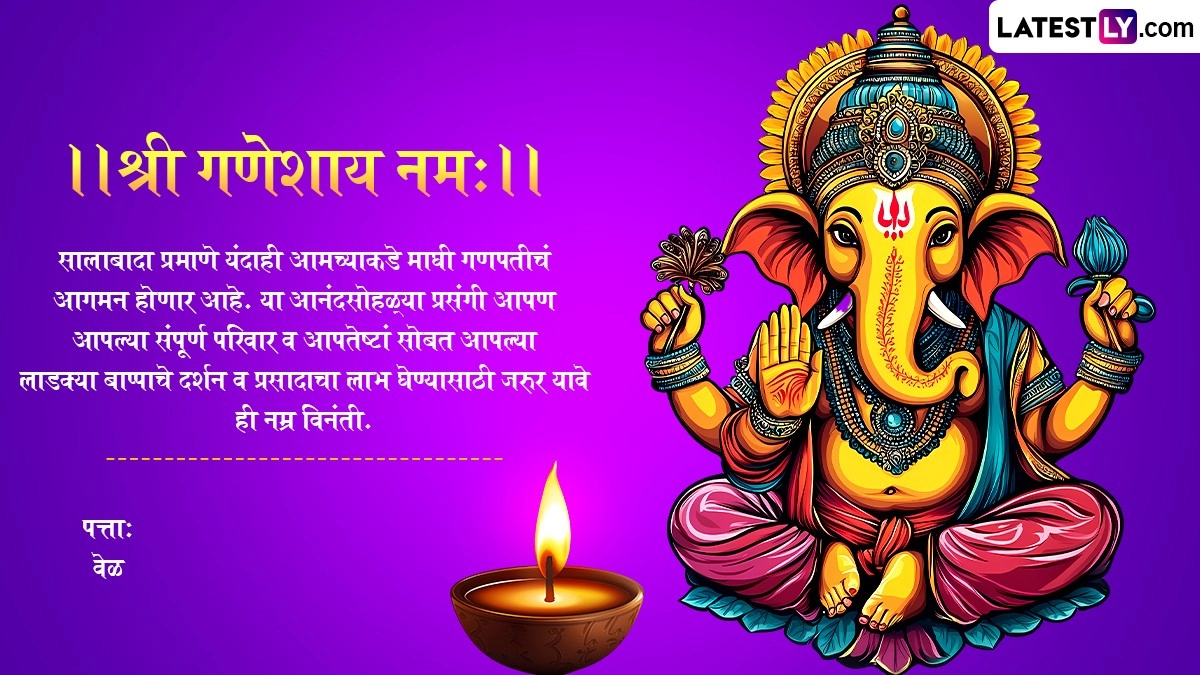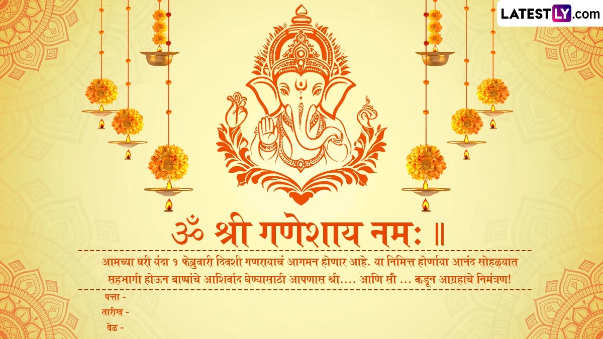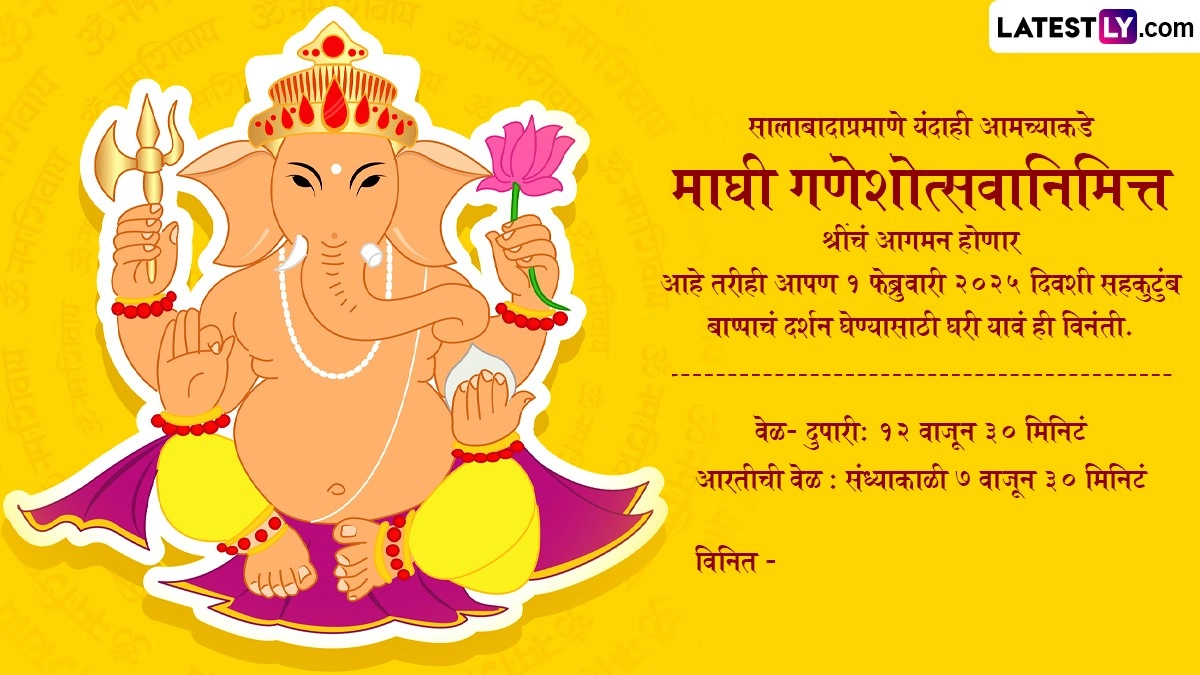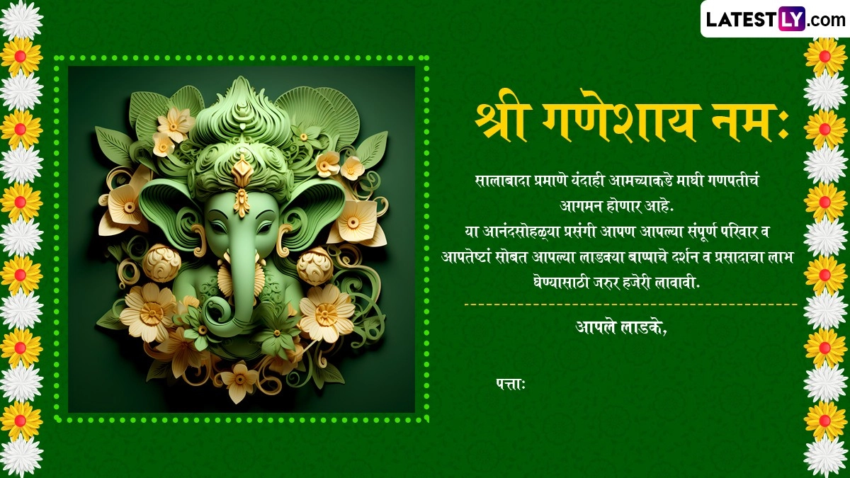 इस वर्ष माघ मास के शुक्ल पक्ष की चतुर्थी तिथि 1 फरवरी को पड़ रही है. इसलिए गणेश जयंती 1 फरवरी को मनाई जाएगी. इस वर्ष गणपति पूजा का मुहूर्त 1 फरवरी को सुबह 11:38 बजे से दोपहर 1:46 बजे तक रहेगा. महाराष्ट्र में माघी गणेश जयंती पर घर में गणेश प्रतिमा लाकर उसकी पूजा करने की परंपरा है. अगर इस साल आपके घर भी बप्पा विराजमान होने वाले हैं, तो हम आपके लिए कुछ खास निमंत्रण कार्ड लेकर आए हैं. आप ये निमंत्रण कार्ड अपने रिश्तेदारों, प्रियजनों और दोस्तों को भेज सकते हैं और उन्हें अपने घर पर बप्पा के दर्शन के लिए आमंत्रित कर सकते हैं.