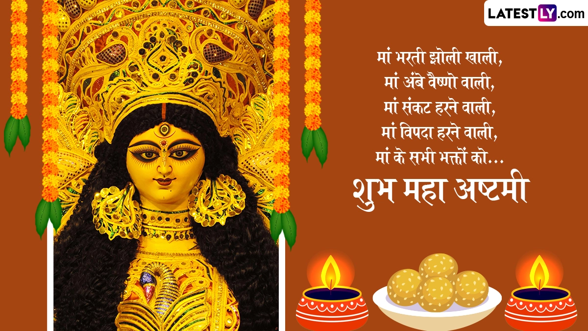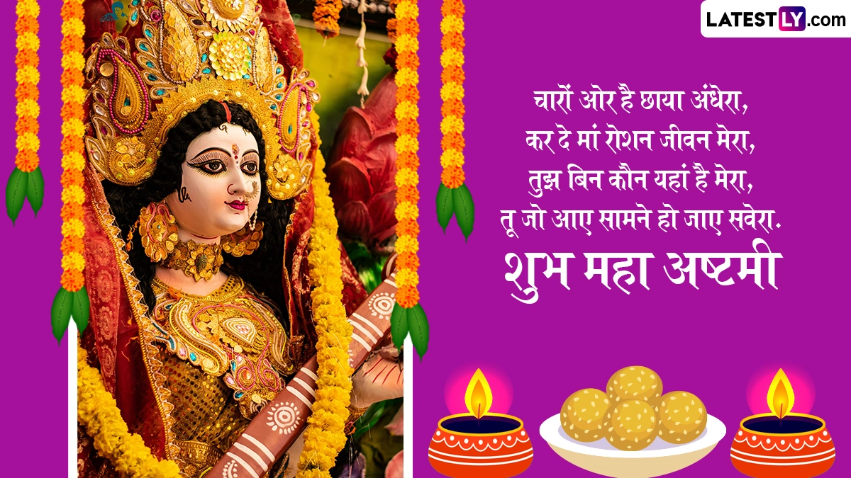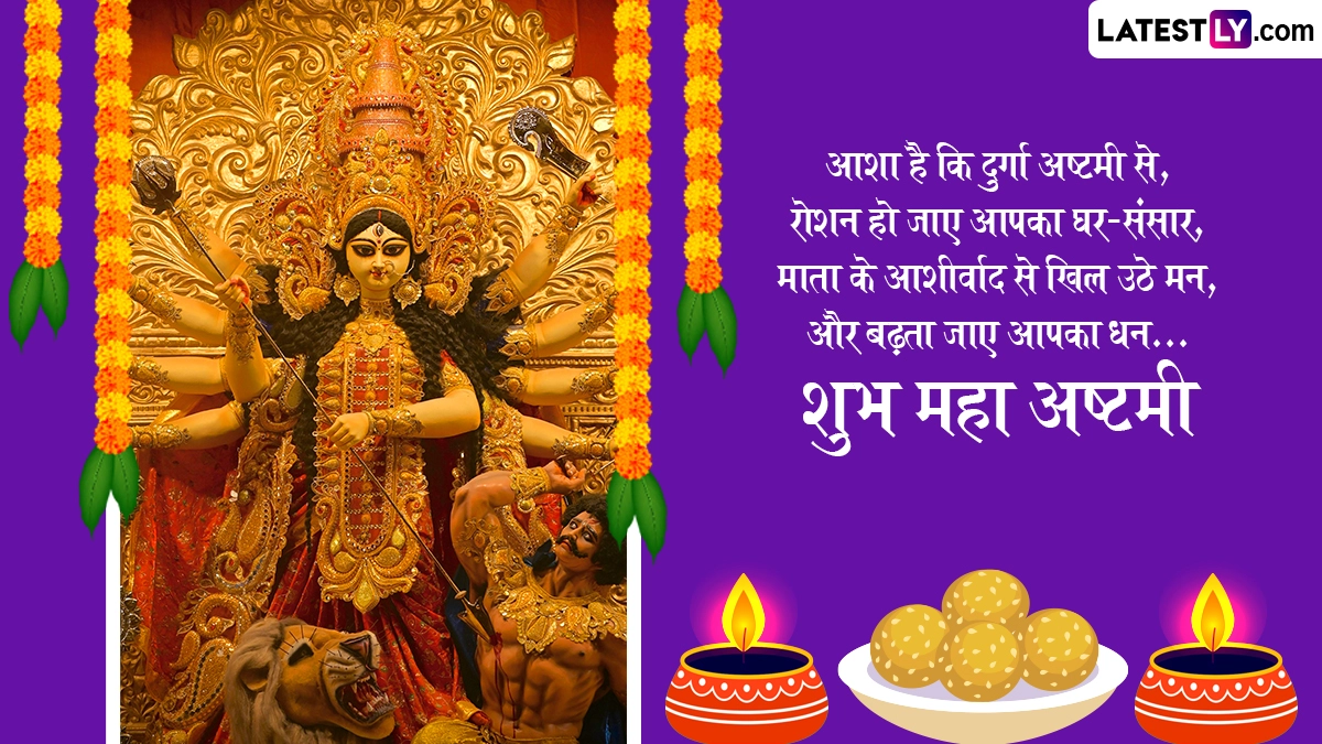 नौ दिवसीय नवरात्रि की अष्टमी तिथि को मां महागौरी की पूजा की जाती है, जबकि इस दिन बंगाली समुदाय के लोग मां दुर्गा को विशेष प्रार्थना अंजलि अर्पित करते हैं. यह दुर्गा पूजा की तीसरा दिन होता है, जिसका खास महत्व होता है. इस अवसर आप इन शानदार हिंदी मैसेजेस, कोट्स, वॉट्सऐप विशेज, फेसबुक ग्रीटिंग्स के जरिए प्रियजनों को महा अष्टमी की शुभकामनाएं दे सकते हैं.