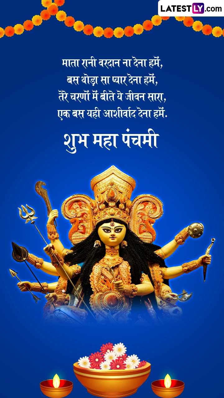 इस साल शारदीय नवरात्रि की महा पंचमी उदया तिथि के अनुसार, 27 सितंबर 2025 को है. इस दिन नौ दिनों तक व्रत रखने वाले भक्त मां स्कंदमाता की पूजा कर रहे हैं तो वहीं बंगाली समुदाय के लोग देवी दुर्गा का आह्वान करने वाले हैं. ऐसे में इस बेहद खास अवसर पर आप इन हिंदी मैसेजेस, वॉट्सऐप विशेज, कोट्स, फेसबुक ग्रीटिंग्स को दोस्तों-रिश्तेदारों संग शेयर कर उनसे शुभ महा पंचमी कह सकते हैं.
